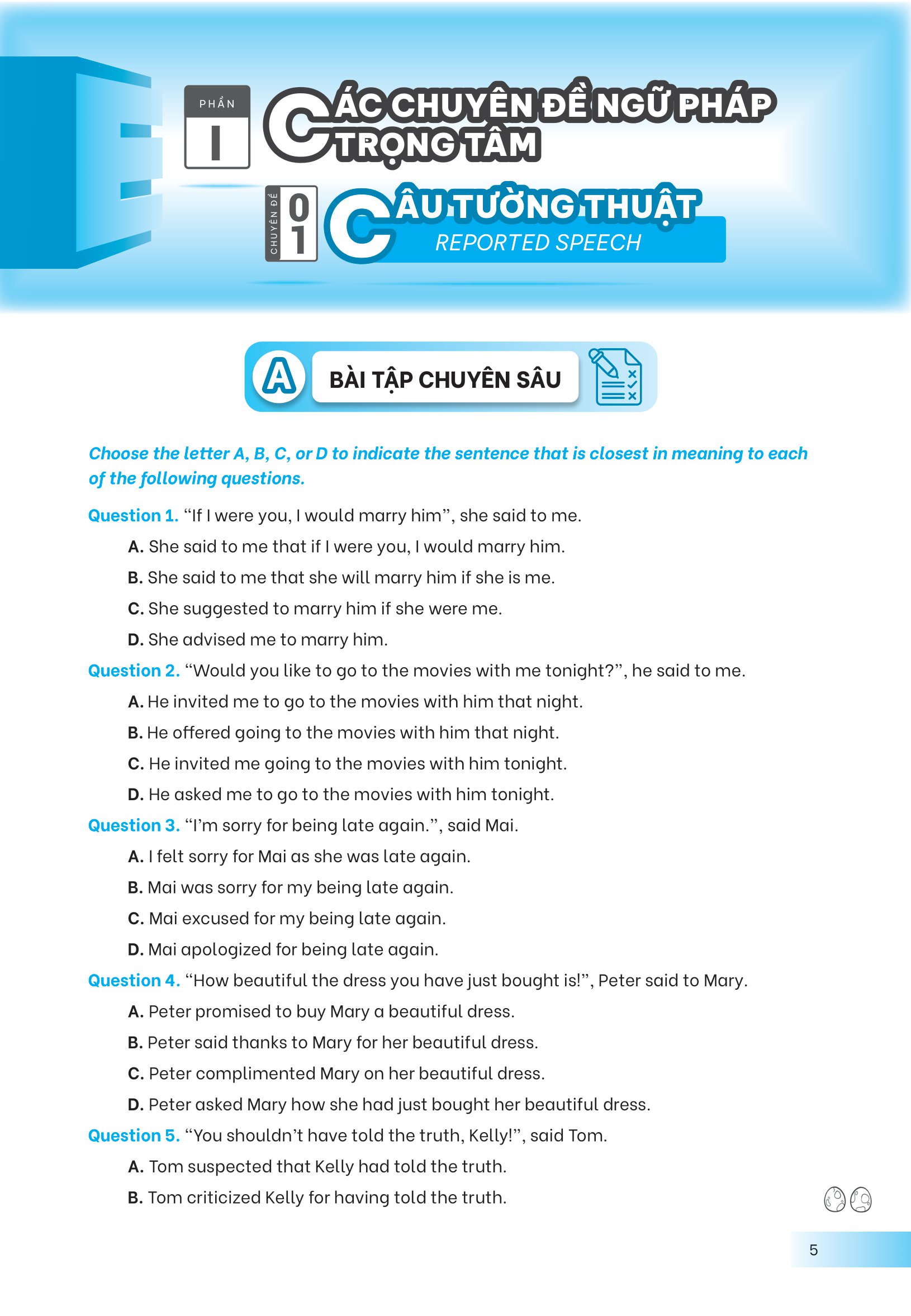 - Đa dạng câu hỏi Cuốn sách cung cấp 600 câu hỏi trắc nghiệm với lời giải chi tiết, 300 câu hỏi luyện tập tổng hợp và 400 câu hỏi tự luyện. Điều này giúp học sinh có nhiều cơ hội thực hành và kiểm tra kiến thức, đảm bảo họ hiểu rõ ngữ pháp và có thể tự kiểm tra năng lực của mình. Cuốn sách không chỉ dành cho học sinh mà còn là tài liệu tham khảo hữu ích cho giáo viên. Nó cung cấp một ngân hàng đề kiểm tra phong phú, giúp giáo viên thiết kế bài kiểm tra và bài tập cho học sinh. Điều này giúp tạo ra môi trường học tập tốt hơn và nâng cao hiệu suất học tập của học sinh.