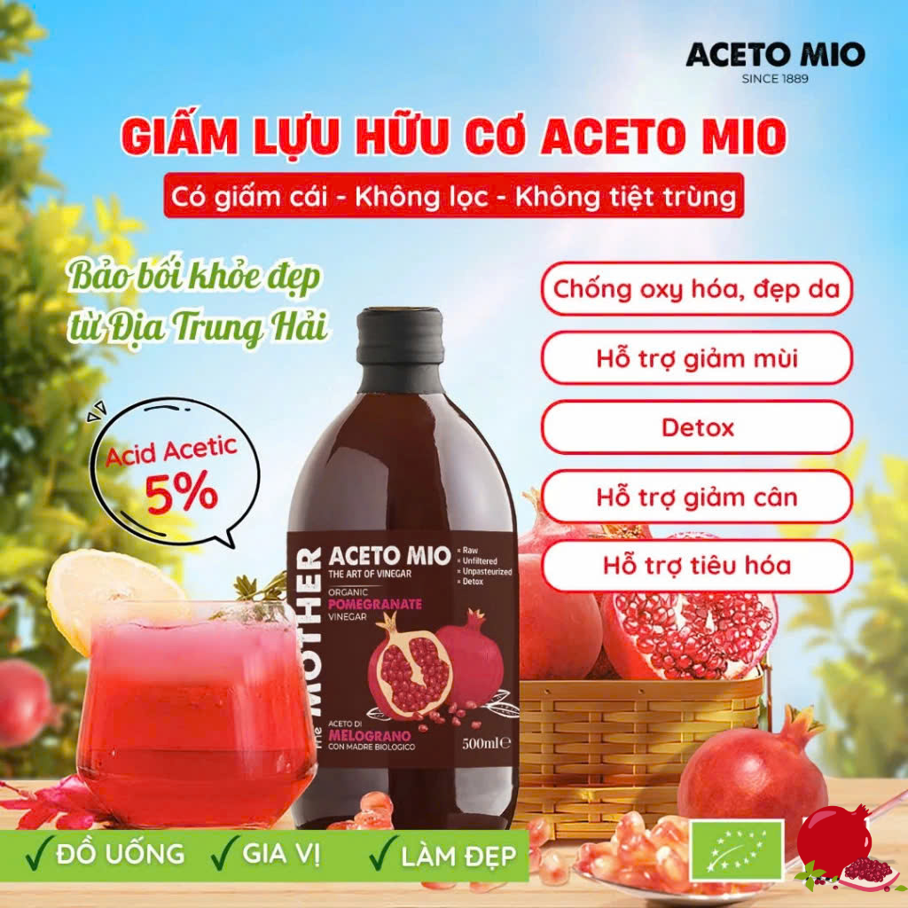 ✨Giấm Lựu Hữu Cơ Aceto Mio (Có Giấm Cái) Chai 500ml, Hỗ Trợ Detox Cơ Thể, Tốt Cho Sức Khỏe