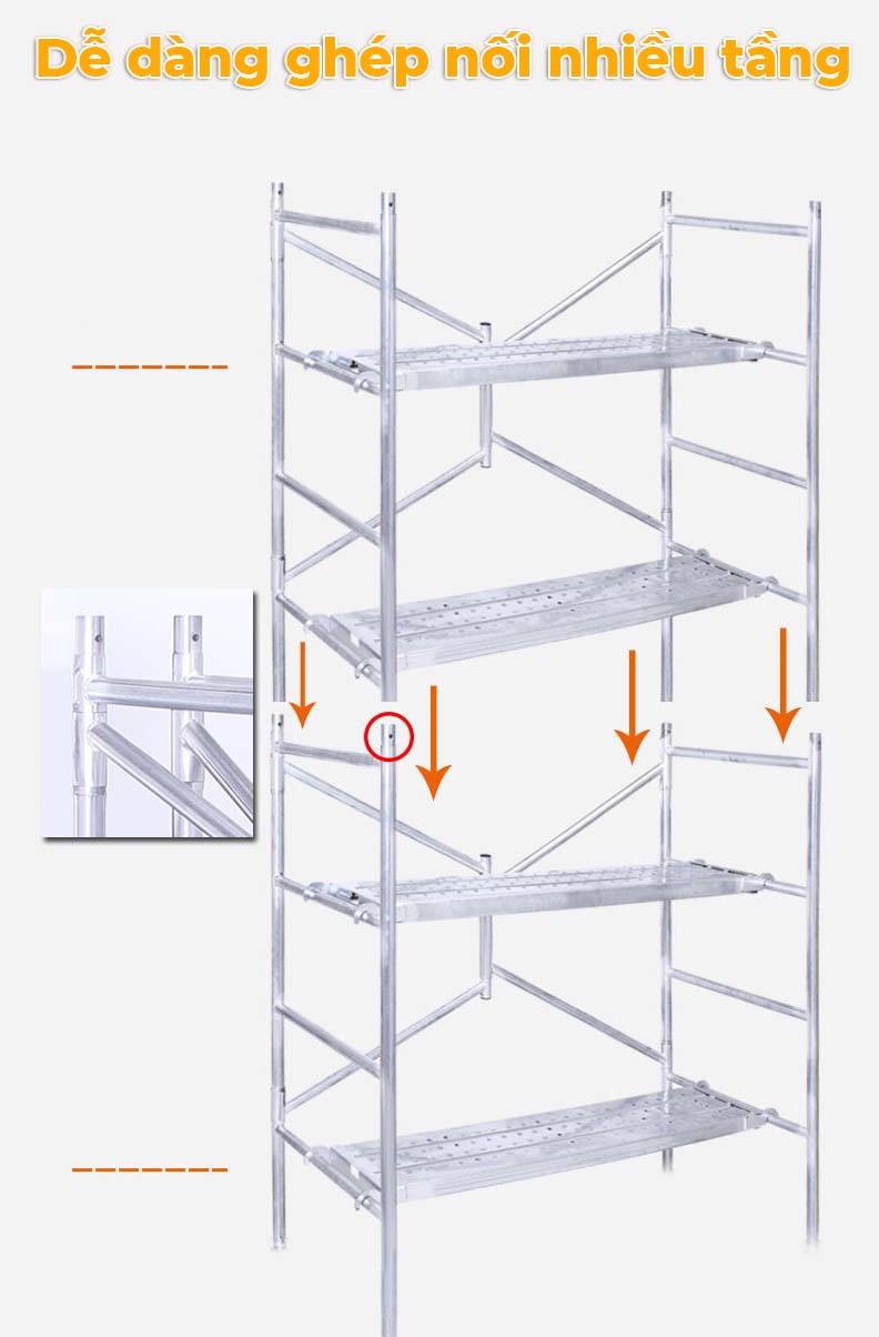 Điểm đặc biệt có thể chồng 2 giàn giáo lên nhau ( chỉ chồng duy nhất lên 1 giàn để đảm bảo an toàn )