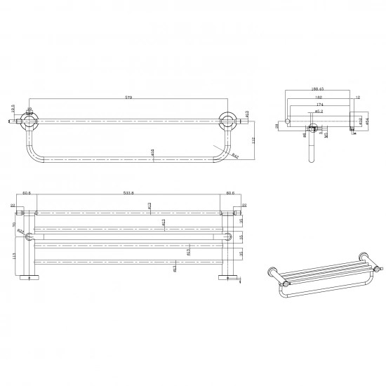 -Mã sản phẩm : KB-604A -Kích thước : 600x220x220mm -Cân nặng: 1.8kg -Máng khăn được làm bằng chất liệu SUS 304, không gỉ sét, sáng bóng và có độ bền cao. - Chịu được lực