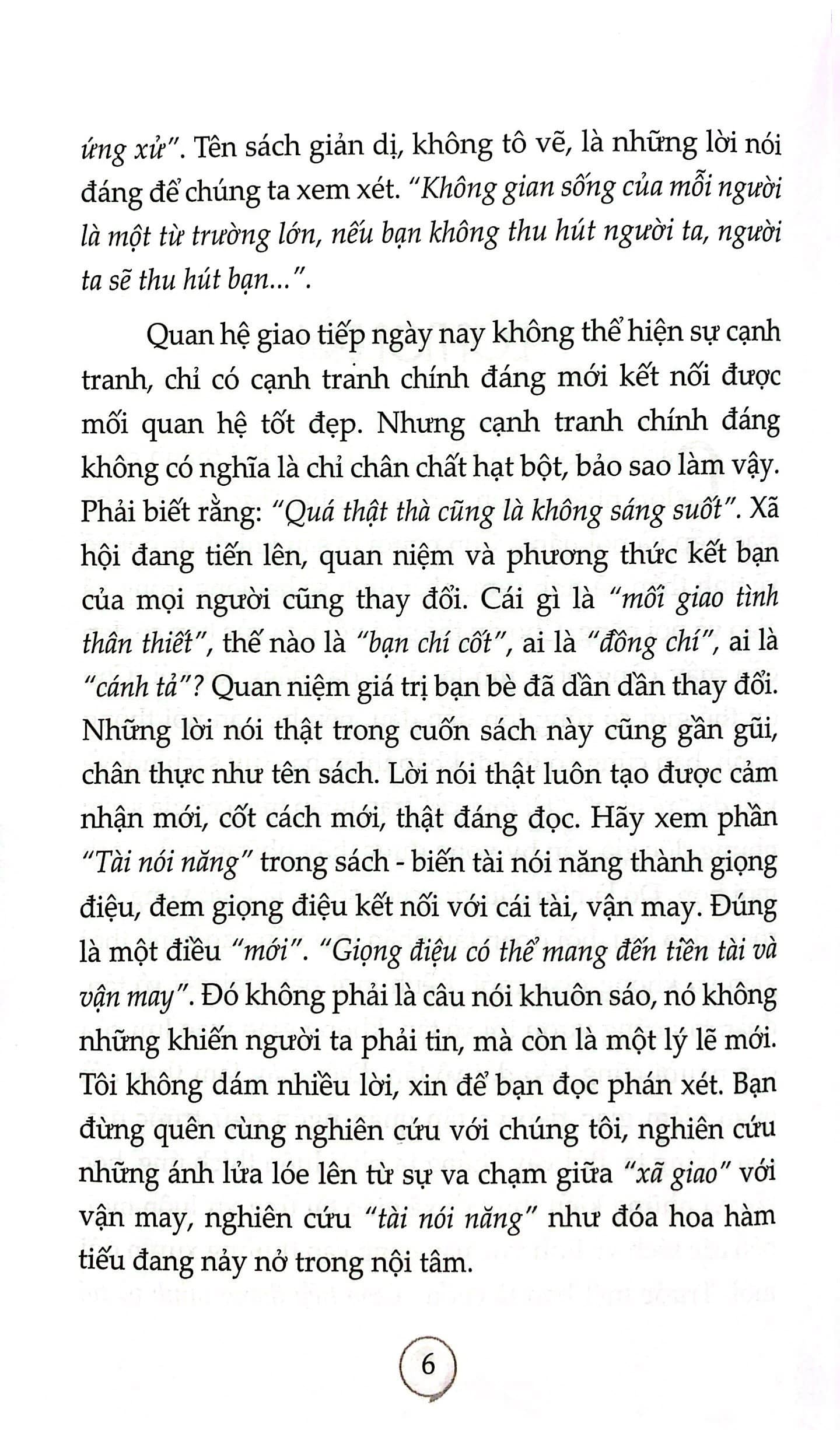 Cuốn sách này sẽ chỉ cho bạn những phương pháp giao tiếp thông minh, cách xử thế khéo léo, những cách thức mềm dẻo khác nhau trong việc bạn xử lý các tình huống. Cuốn sách cũng cung cấp cho bạn những bí quyết để thuyết phục người khác, biến thất bại thành thành công. Và cho dù bất cứ ở tình huống nào, bạn cũng sẽ xoay sở để đối phó với nó một cách nhanh chóng và thông minh.