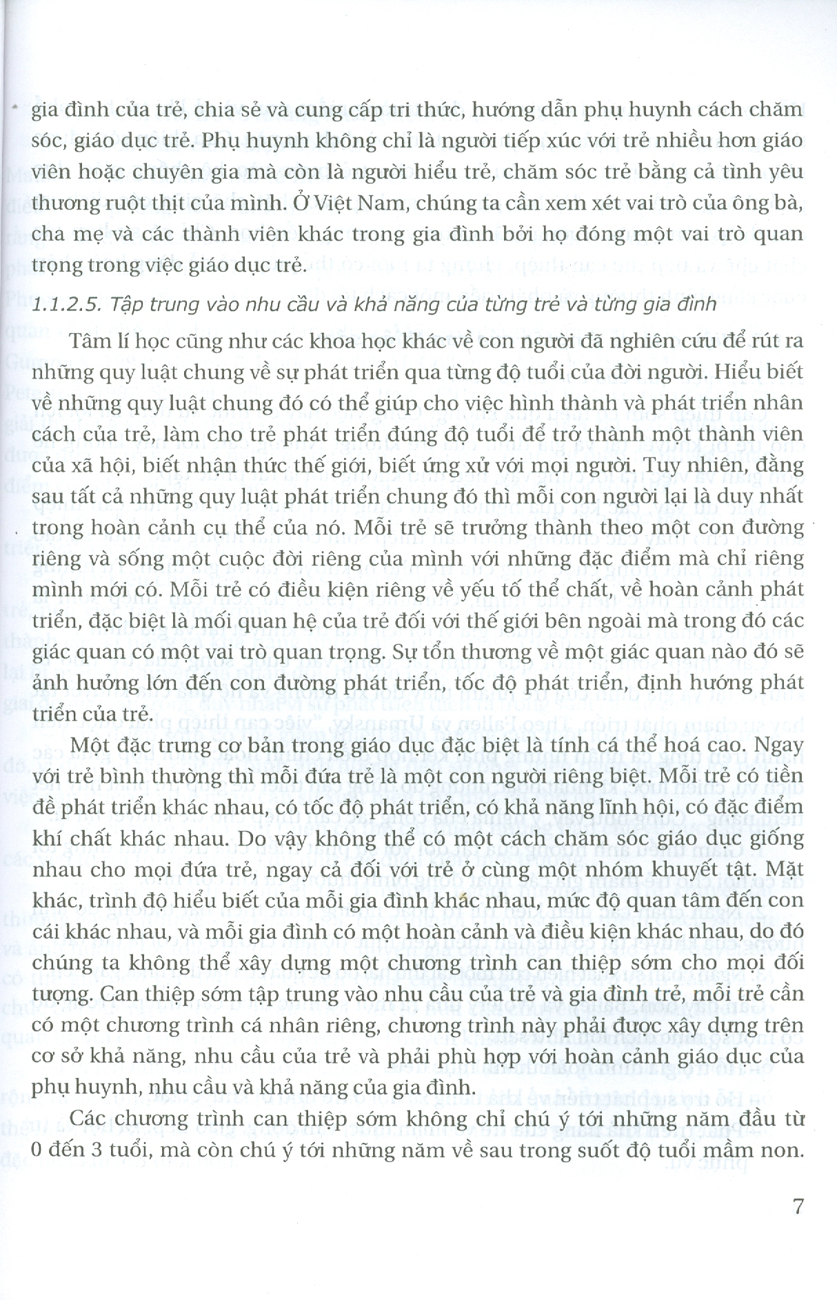 Chương 3: Cung cấp những vấn đề lí luận về hệ thống gia đình và vận dụng lí thuyết về hệ thống gia đình trong công tác can thiệp sớm. Đồng thời cũng cung cấp cách thức làm việc với phụ huynh, hỗ trợ và tư vấn phụ huynh về tâm lí cũng như kiến thức, kĩ năng chăm sóc trẻ.
