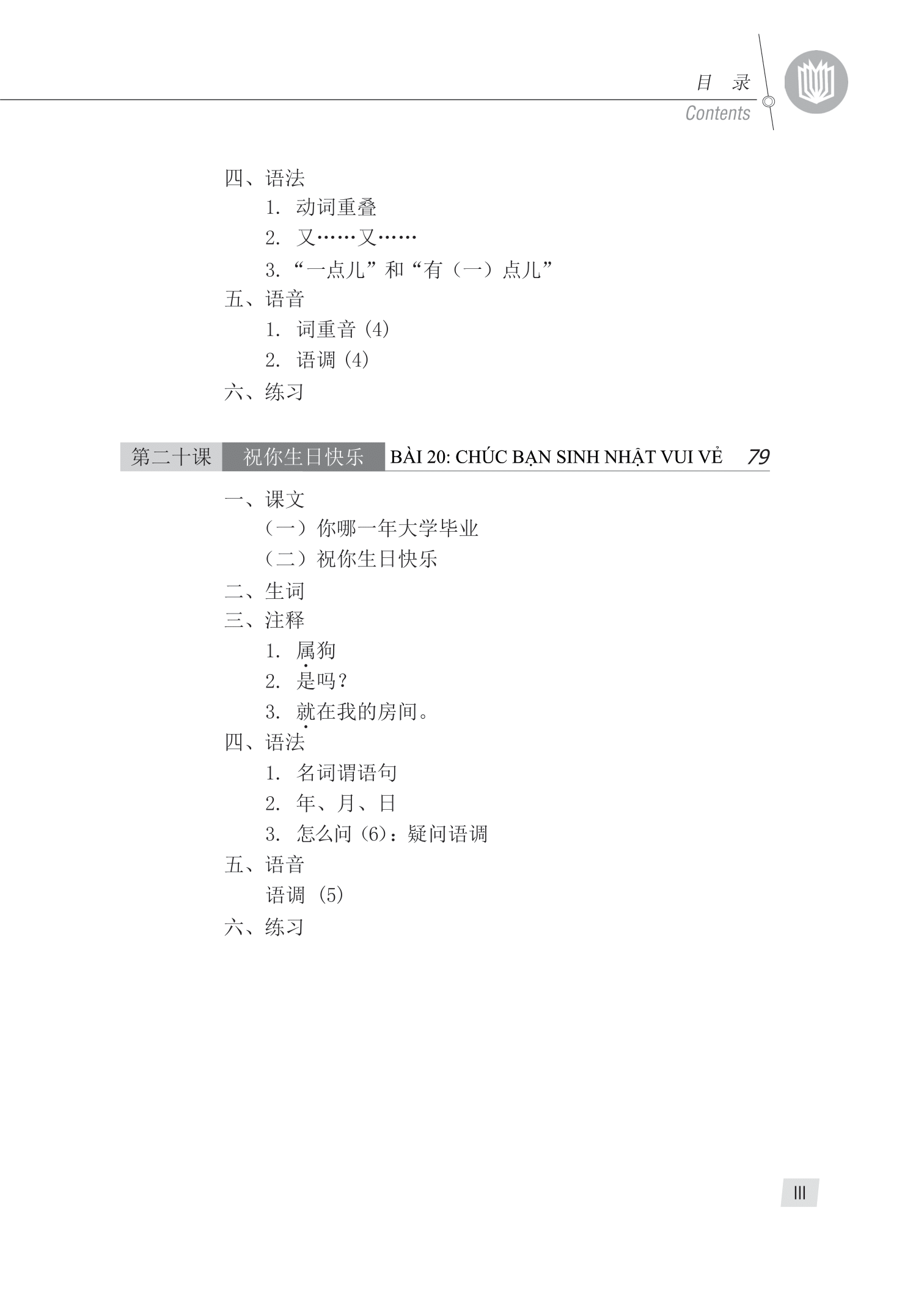 Giáo Trình Hán Ngữ 3 - Tập 2: Quyển Thượng (Phiên Bản 3) Các bài học trong “Giáo trình Hán ngữ” Tập 1 và Tập 2 được thiết kế như sau: 1. Bài đọc, 2. Từ mới, 3. Chú thích, 4. Ngữ âm, Ngữ pháp, 5. Luyện tập. 1. Bài đọc Bài khóa ở Tập 1 và Tập 2 (từ bài 1 đến bài 50) chủ yếu là những đoạn hội thoại thực tế, ngoài ra có biên soạn một vài đoạn văn trần thuật. Bài khóa là một phần quan trọng nhất trong giáo trình, và cũng là nội dung giảng dạy chủ yếu trên lớp. Bài khóa là môi trường để ứng dụng ngữ pháp và từ vựng. Ngữ pháp là cấu trúc khung khi thiết kế bài khóa và cũng là một sợi dây liên kết ngầm. Tách riêng khỏi bài khóa, ngữ pháp sẽ không còn môi trường để ứng dụng. Hoạt động giảng dạy tiếng Hán trên lớp ở giai đoạn sơ cấp nên kết hợp cả ba yếu tố này trên cơ sở tuân thủ nguyên tắc ngữ pháp từ dễ đến khó. Phải giúp cho sinh viên hiểu ngữ cảnh sử dụng câu, để sinh viên từng bước nắm được cách biểu đạt câu từ cho chính xác trong từng ngữ cảnh cụ thể. Mục đích của chúng ta là lấy ngữ pháp làm kim chỉ nam cho việc học bài khóa, thông qua kỹ xảo như đọc diễn cảm, đọc thuộc, viết lại bài khóa… để nâng cao kỹ năng nghe, nói, đọc, viết cho sinh viên và củng cố khả năng giao tiếp xã hội bằng tiếng Hán. Việc giảng dạy trên lớp nên chú ý tập trung cho sinh viên nghe, đọc, nói lại bài khóa. Tất cả các phần như từ mới, chú thích, và ngữ pháp đều phục vụ cho việc dạy và học bài khóa. 2. Từ mới Ở Tập 1 và Tập 2 của bộ giáo trình có tổng cộng hơn 1600 từ mới. Tiêu chí lựa chọn những từ này chính là tần suất sử dụng thường xuyên của nó. Hơn nữa mỗi bài chỉ có một lượng từ nhất định. Trên lớp, các thầy cô hãy giảng dạy từ mới trong câu bởi chỉ có câu và bài khóa mới có khả năng quy định tính duy nhất về nghĩa của từ. 3. Chú thích Phần chú thích trong giai đoạn ngữ âm chủ yếu giới thiệu kiến thức cơ bản về ngữ âm tiếng Hán. Còn ở giai đoạn ngữ pháp và mẫu câu, chủ yếu giới thiệu và giải thích một số kiến thức trọng điểm về ngôn ngữ và bối cảnh văn hóa Trung Quốc. Đối với những câu có điểm ngữ pháp xuất hiện trong bài khóa nhưng chưa được giải thích, hãy để sinh viên được hiểu nghĩa thông qua phần dịch nội dung chú thích. 4. Ngữ âm, ngữ pháp Bộ giáo trình dành 10 bài để giảng dạy ngữ âm. Nhưng nói một cách nghiêm túc, việc luyện tập ngữ âm, ngữ điệu cần phải xuyên suốt cả giai đoạn sơ cấp. Tầm quan trọng của việc luyện tập ngữ âm là rất lớn và cần đặc biệt nhấn mạnh. Phải lưu ý rằng, ở giai đoạn mẫu câu và đoạn văn, việc giảng dạy ngữ âm cần được tiến hành kết hợp với việc luyện đọc to và học thuộc bài khóa. Các bài luyện đọc ngữ âm được thiết kế trong phần bài tập chỉ mang tính chất gợi ý. Phần ngữ pháp của giáo trình sẽ không quá chú trọng tính hệ thống, thế nhưng nó được biên soạn theo nguyên tắc từ dễ đến khó, nắm bắt dần dần. Vì vậy, nếu không hoàn thành tốt nhiệm vụ giảng dạy của Tập 1 và Tập 2 mà giảng dạy ngay vào Tập 3 sẽ gặp phải nhiều khó khăn. Cần nhấn mạnh rằng, bộ giáo trình này dựa vào cấu trúc ngữ pháp tiếng Hán để giảng dạy bài đọc, dạy sinh viên nói tiếng Trung theo kết cấu ngữ pháp. Do đó, việc giải thích ngữ pháp cần ngắn gọn, rõ ràng, đơn giản, mạch lạc, bắt đầu từ cấu trúc ngữ pháp rồi giải thích ngữ nghĩa, chức năng, ngữ dụng; dạy sinh viên cách vận dụng ngữ pháp để nói, viết, biểu đạt tiếng Hán. Trên lớp, giáo viên có thể sử dụng nhiều phương pháp hình tượng, trực quan như tranh ảnh, động tác, phần mềm máy tính… để giảng giải các hiện tượng ngữ pháp, giúp sinh viên nắm bắt ý nghĩa, chức năng và ngữ cảnh của từng điểm ngữ pháp nhằm nâng cao khả năng giao tiếp bằng tiếng Hán của sinh viên. 5. Luyện tập Các bài tập trong giáo trình chú trọng nguyên tắc học tập đi từ lý giải, mô phỏng, ghi nhớ, thành thạo rồi đến ứng dụng. Các dạng bài tập bao gồm bài tập lý giải, bài tập mô phỏng và bài tập giao tiếp,… hỗ trợ cả nhu cầu học trên lớp lẫn nhu cầu tự học ở nhà. Giáo viên có thể ứng dụng linh hoạt theo tình hình giảng dạy thực tế. Giảng dạy tiếng Hán cho người nước ngoài khác với việc giảng dạy tiếng Hán cho người Trung Quốc ở chỗ, giảng dạy yếu tố ngôn ngữ không thể tiến hành độc lập. Quá trình giảng dạy các yếu tố ngôn ngữ chính là quá trình rèn luyện kỹ năng ngôn ngữ và kỹ năng giao tiếp ngôn ngữ. Trên lớp, giáo viên và sinh viên nên tương tác, kết hợp giảng dạy lẫn thực hành. Cho dù là dạy ngữ âm, ngữ pháp, mẫu câu hay từ vựng, đoạn văn đều cần tuân thủ nguyên tắc thực hành là hàng đầu, giao tiếp là chủ đạo, tinh giảng đa luyện. Có như vậy, chúng ta mới đạt được hiệu quả giảng dạy tối ưu.