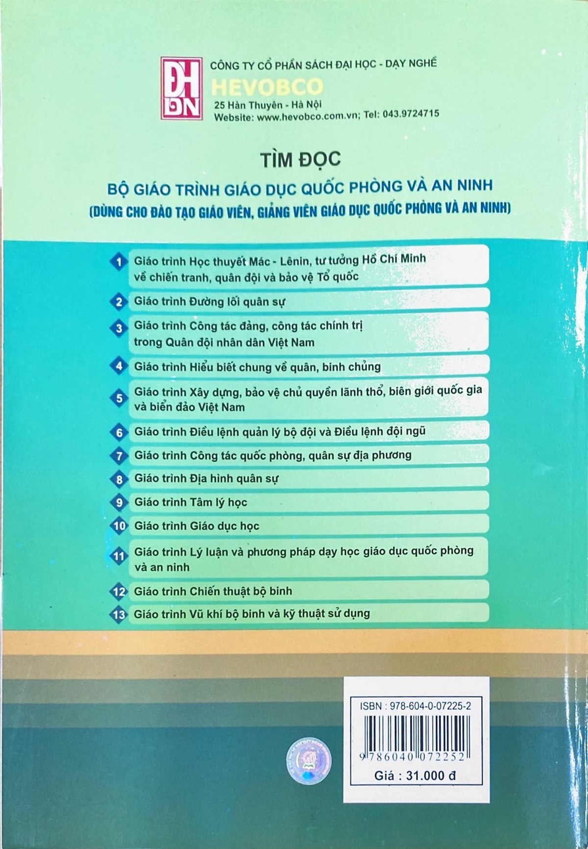Học thuyết Mác – Lênin, tư tưởng Hồ Chí Minh về chiến tranh, quân và bảo Tổ quốc là cơ sở lý luận, phương pháp luận của Đảng ta trong các hoạt động đấu tranh vũ trang bảo vệ Tổ quốc trong giai đoạn cách mạng hiện nay. Giáo trình Học thuyết Mác – Lênin, tư tưởng Hồ Chí Minh về chiến tranh, quân đội và bảo vệ Tổ quốc dùng cho đào tạo giáo viên, giảng viên giáo dục quốc phòng và an ninh. Nội dung của giáo trình đề cập đến những vấn đề cơ bản về quan điểm của chủ nghĩa Mác Lênin, - tư tưởng Hồ Chí Minh về chiến tranh, về xây dựng nền quốc phòng toàn dân, lực lượng vũ trang nhân dân và bảo vệ Tổ quốc Việt Nam xã hội chủ nghĩa. Giáo trình được biên soạn trên cơ sở chủ trương, đường lối, nghị quyết của Đảng, các tài liệu chính thống về học thuyết Mác – Lênin, tư tưởng Hồ Chí Minh về chiến tranh, quân đội và bảo vệ Tổ quốc và được cập nhật, điều chỉnh phù hợp với đối tượng, chương trình đào tạo. Tập thể tác giả đã có nhiều cố gắng, song quá trình biên soạn chắc chắn không tránh khỏi những hạn chế. Rất mong nhận được sự đóng góp chân thành của các nhà khoa học, các nhà giảo cùng đông đảo bạn đọc.