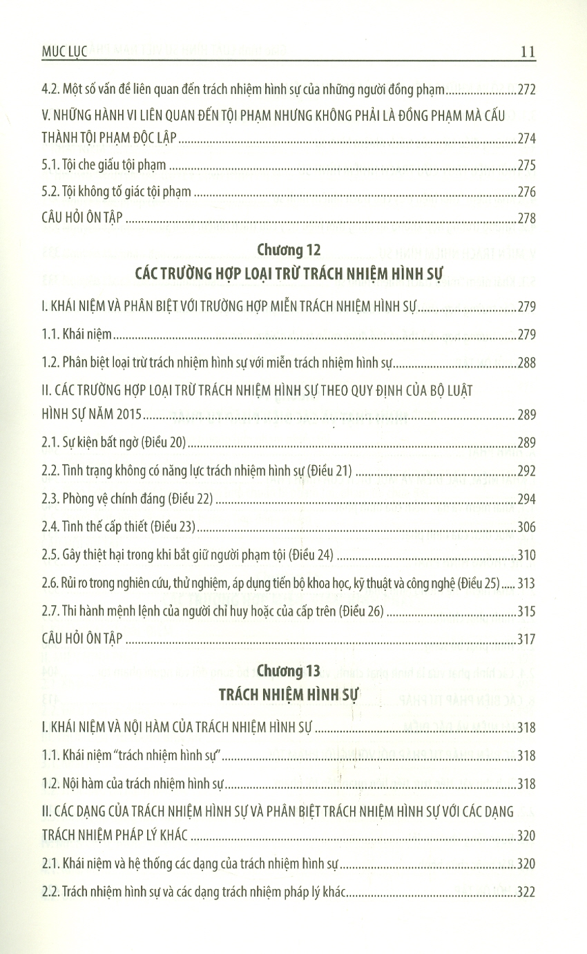 - Về kết cấu: Cuốn sách được sắp xếp theo các vấn đề lôgíc và khoa học. Đặc biệt, trong lần in này, Chương “Các nguyên tắc của Hình sự Việt Nam” được viết gộp chung với Chương “Đạo luật hình sự”; bên cạnh đó có một chương mới được viết thêm về “Trách nhiệm hình sự của pháp nhân thương mại phạm tội” nhằm mục đích tìm hiểu, nghiên cứu về cơ sở lý luận và những căn cứ pháp lý để truy cứu trách nhiệm hình sự pháp nhân thương mại phạm tội do đây là vấn đề lần đầu tiên được quy định trong Bộ luật Hình sự Việt Nam.