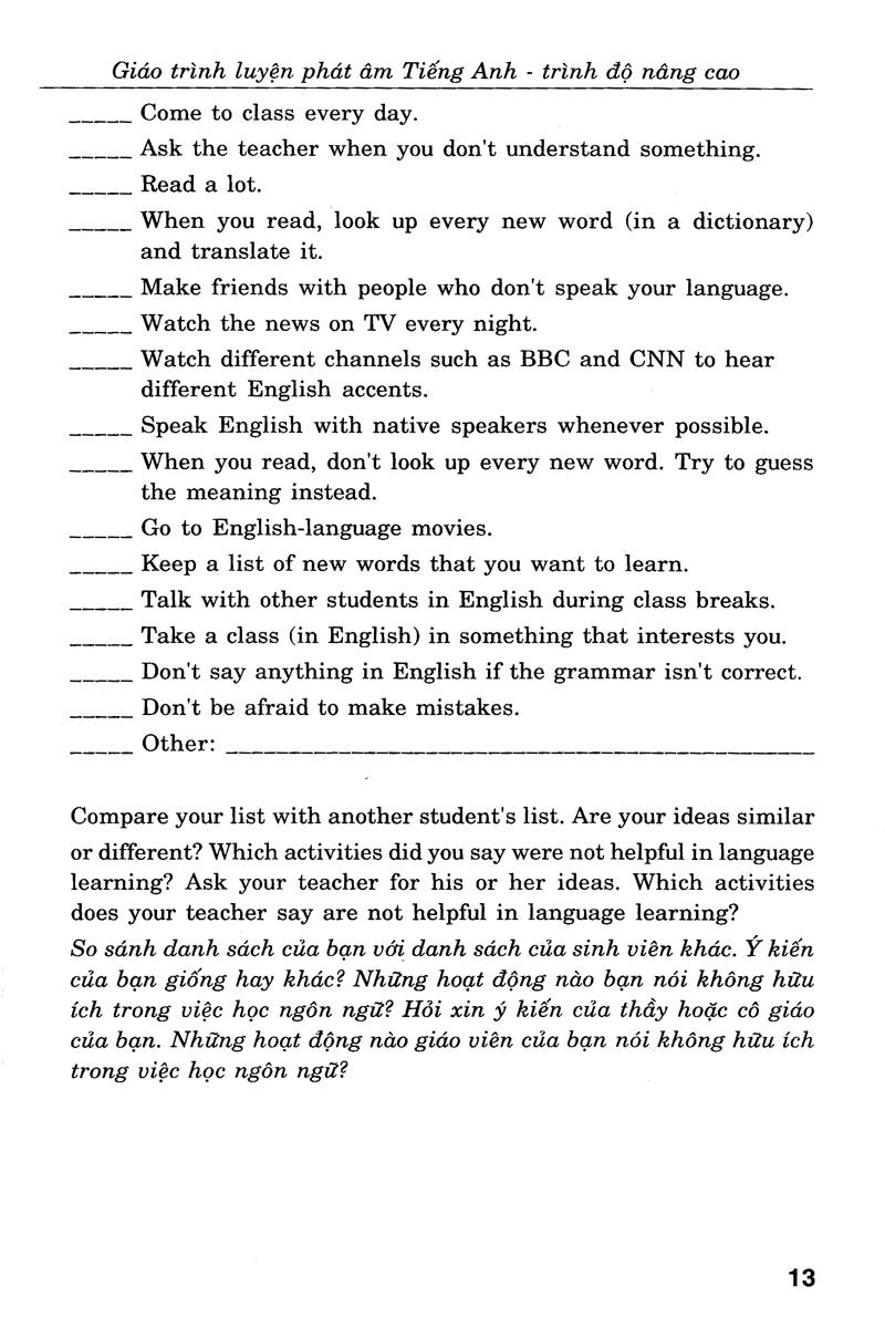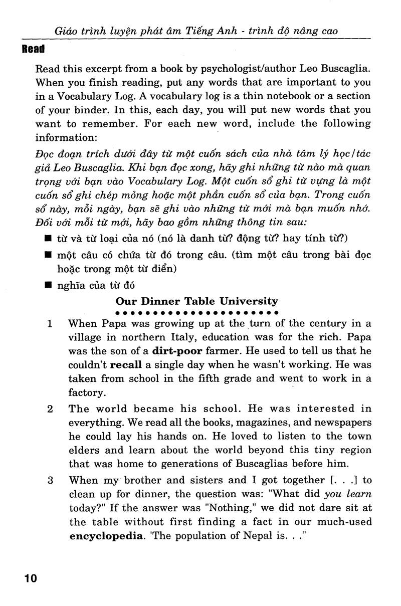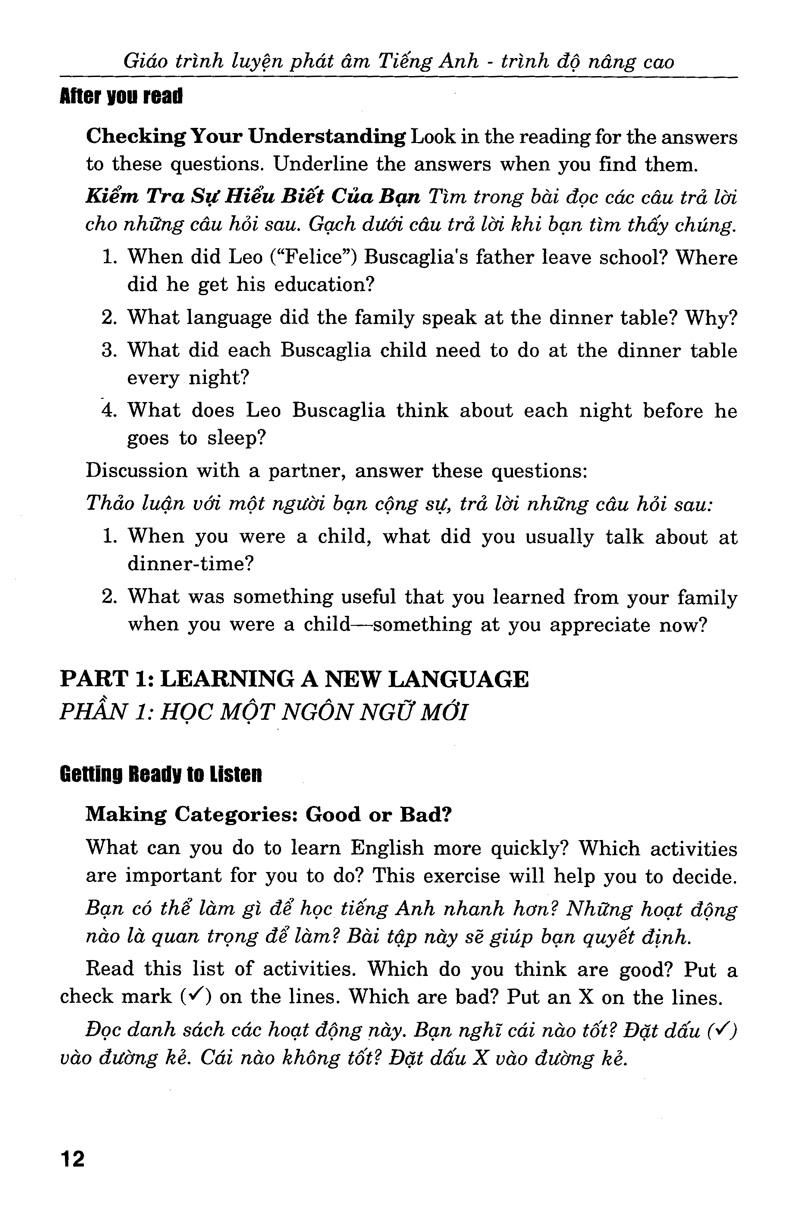 Cuốn sách sẽ giúp các luyện Nghe - Nói về những vấn đề lớn hơn chẳng hạn các cuộc hội thảo về những vấn đề như: con người, văn hóa, và tư tưởng, v.v...Bên cạnh việc rèn luyện hai kỹ năng Nghe và Nói, cuốn sách này còn giúp các bạn có thêm những nhận biết thú vị khác.