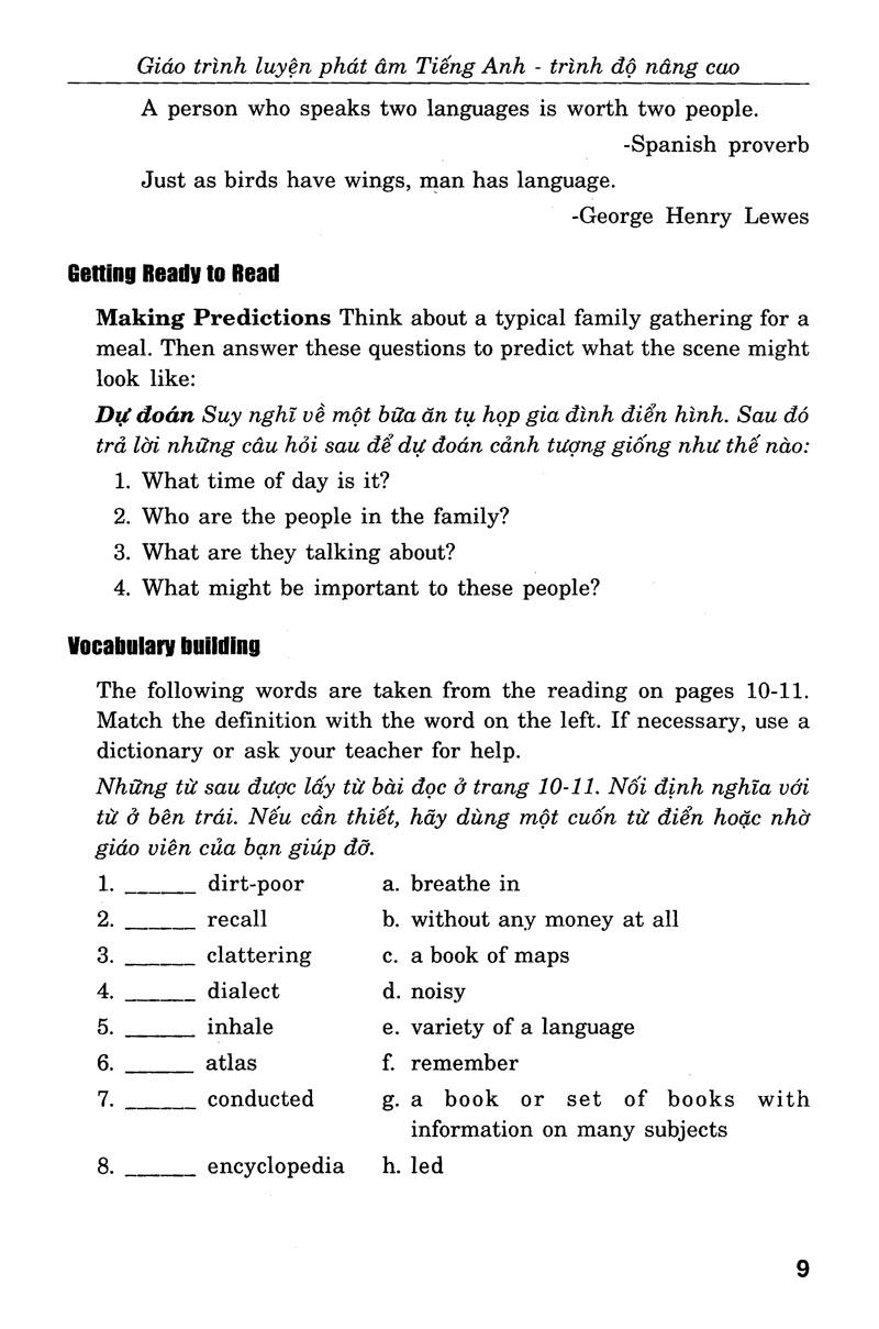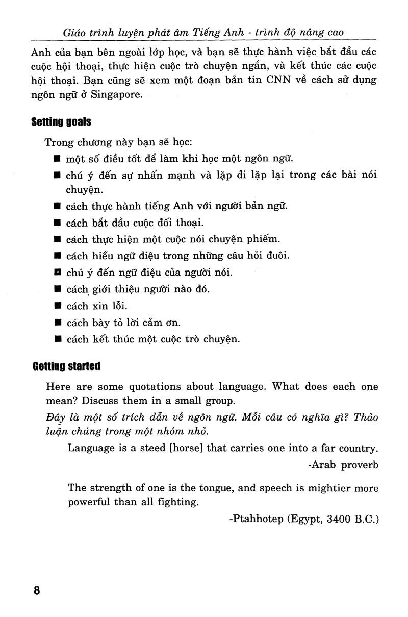 Cấu trúc cuốn sách Giáo Trình Luyện Kỹ Năng Nghe - Nói Tiếng Anh - Trình Độ Trung Cấp bao gồm 9 nội dung:
