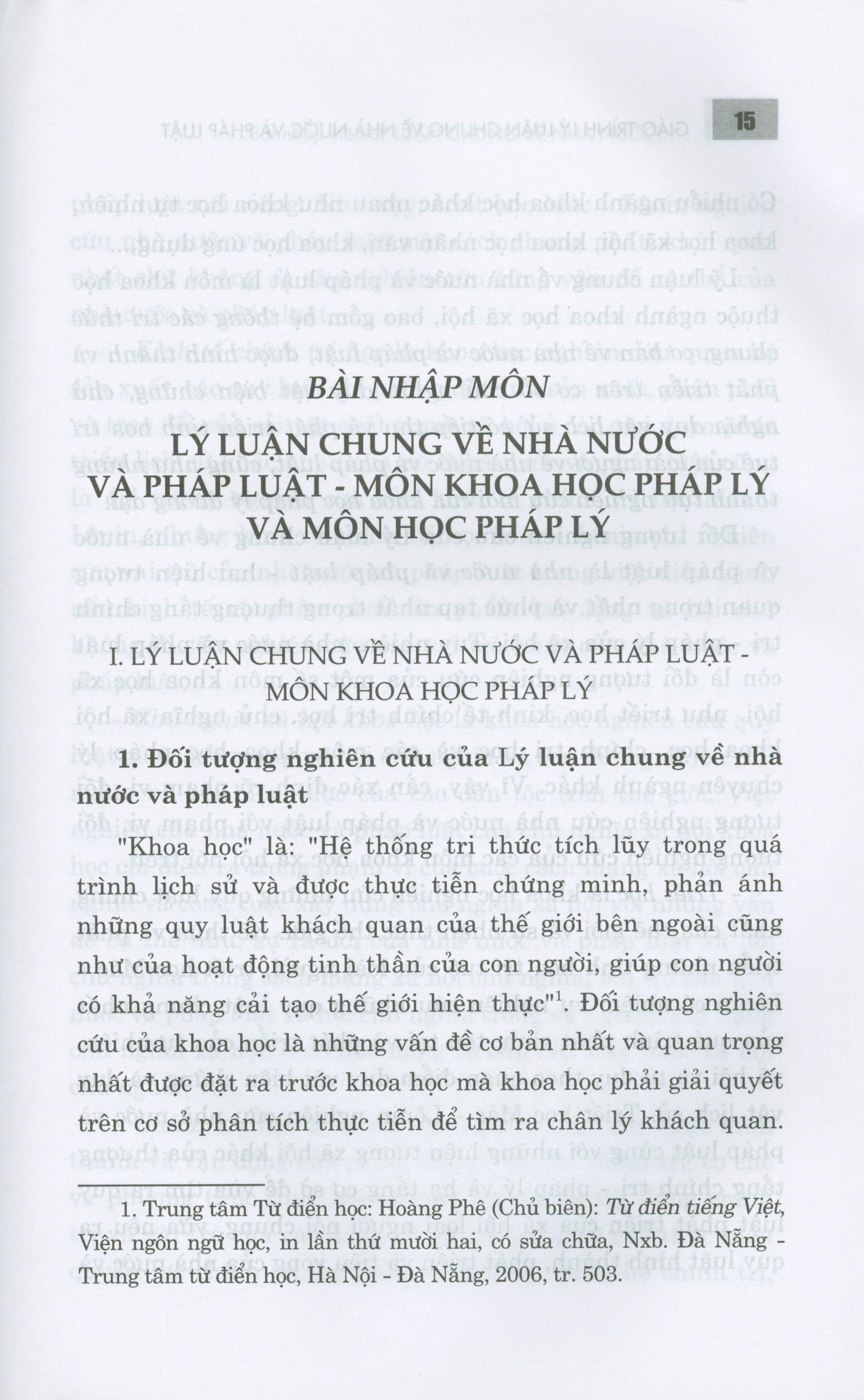 Lý luận chung về nhà nước và pháp luật là môn học quan trọng trong hệ thống khoa học pháp lý chứa đựng hệ thống các tri thức chung, cơ bản về nhà nước và