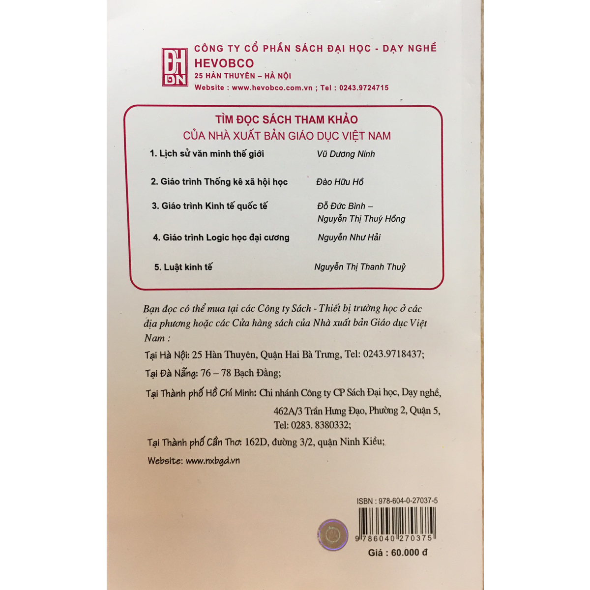 Thông tin sản phẩm Tên đề tài: Lịch sử văn minh thế giới Tác giả: Nguyễn Văn Ánh Khổ sách: 16 x 24 cm Số trang: 468 trang Năm tái bản: 2022 Nhà xuất bản: