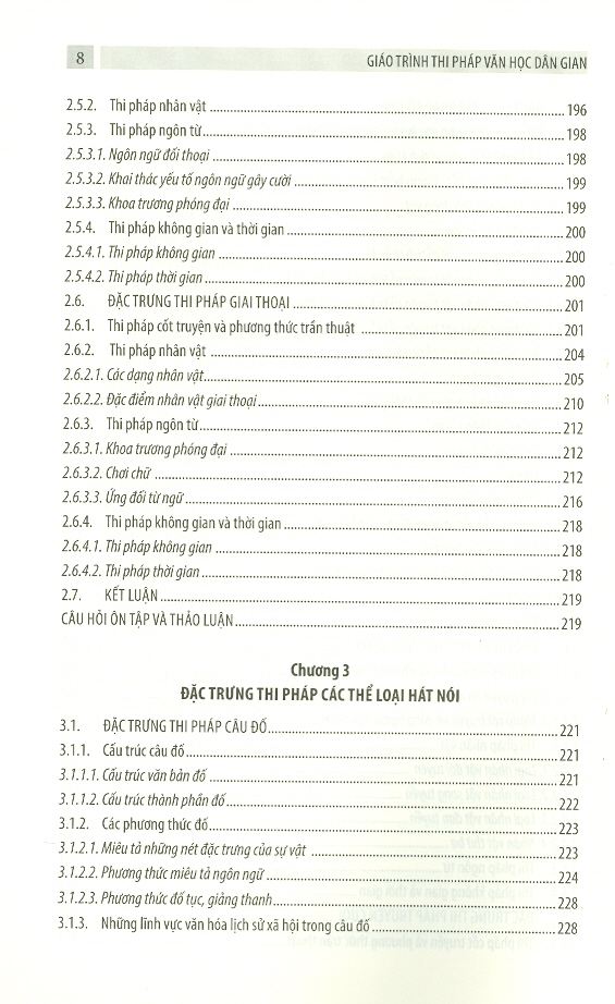 Giáo trình được cấu trúc thành bốn chương, chương 1 nêu những đặc trưng chung của thi pháp văn học dân gian, chương 2, 3, 4 là các phần đi vào đặc trưng thi pháp của các thể loại văn học dân gian. Chúng tôi chia thi pháp các thể loại văn học dân gian theo chức năng diễn xướng. Trong chương 4, chúng tôi trình bày thêm thi pháp của thể loại chèo và tuồng mà tất cả các giáo trình thi pháp hiện hành chưa đề cập đến.