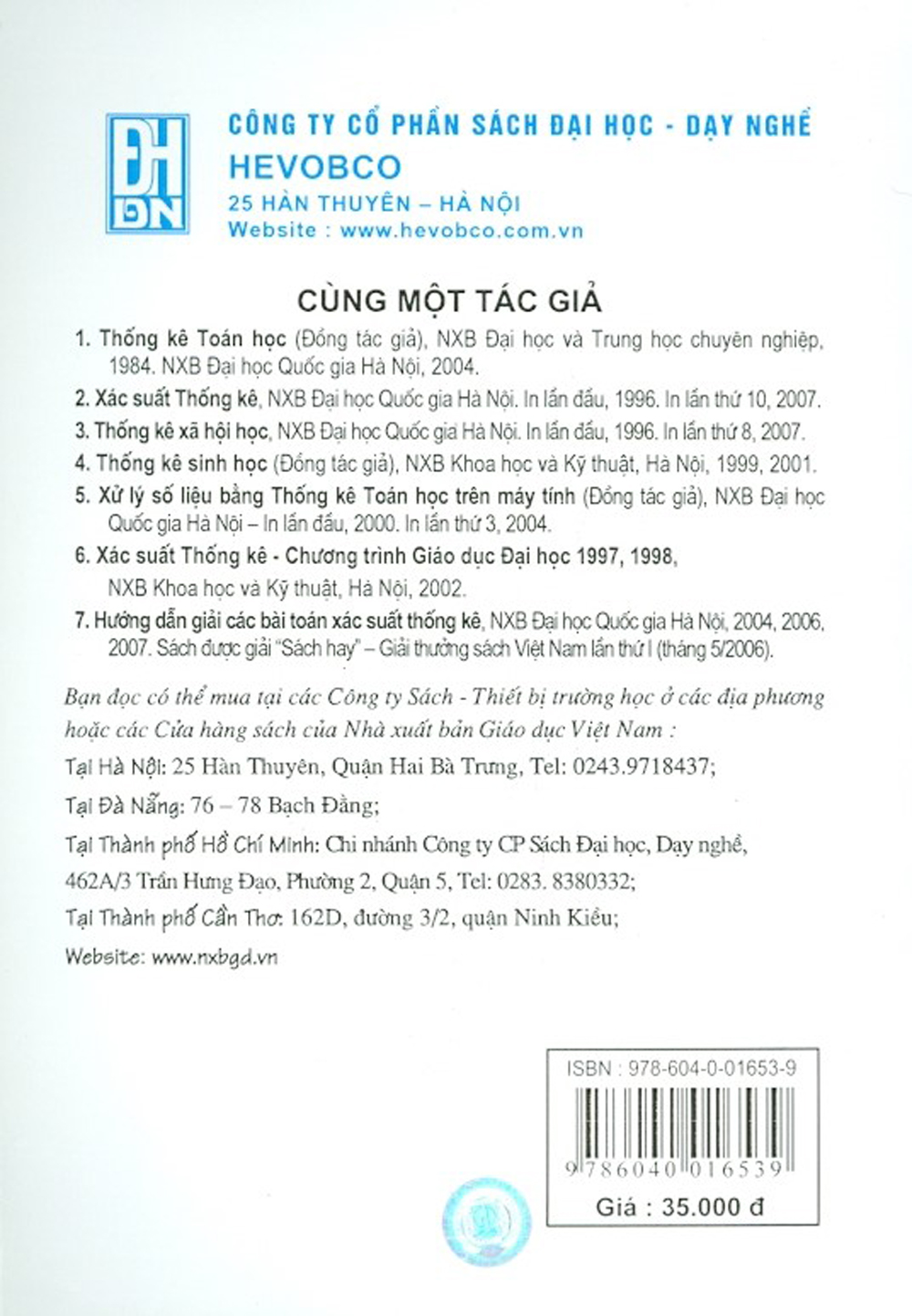 Sách - Xác suất thống kê - Dành cho sinh viên các trường kỹ thuật và công nghệ Tác giả: PGS. TS. Tô Văn Ban Nhà xuất bản: Nhà Xuất Bản Giáo Dục Việt Nam