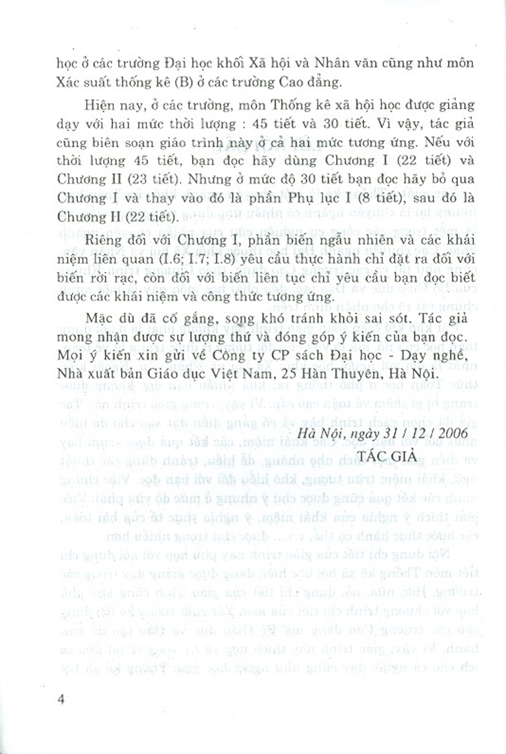 Mua tại TiktokTrình bày một số khái niệm, kết quả cơ bản của xác suất và thống kê xã hội qua các bài toán giải tích tổ hợp, phép thử và biến cố, biến ngẫu nhiên, hàm phân phối, các số đặc trưng của biến ngẫu nhiên, lí thuyết mẫu, ước lượng đơn giản, bài toán kiểm định giả thiết đơn giản, tương quan và hồi