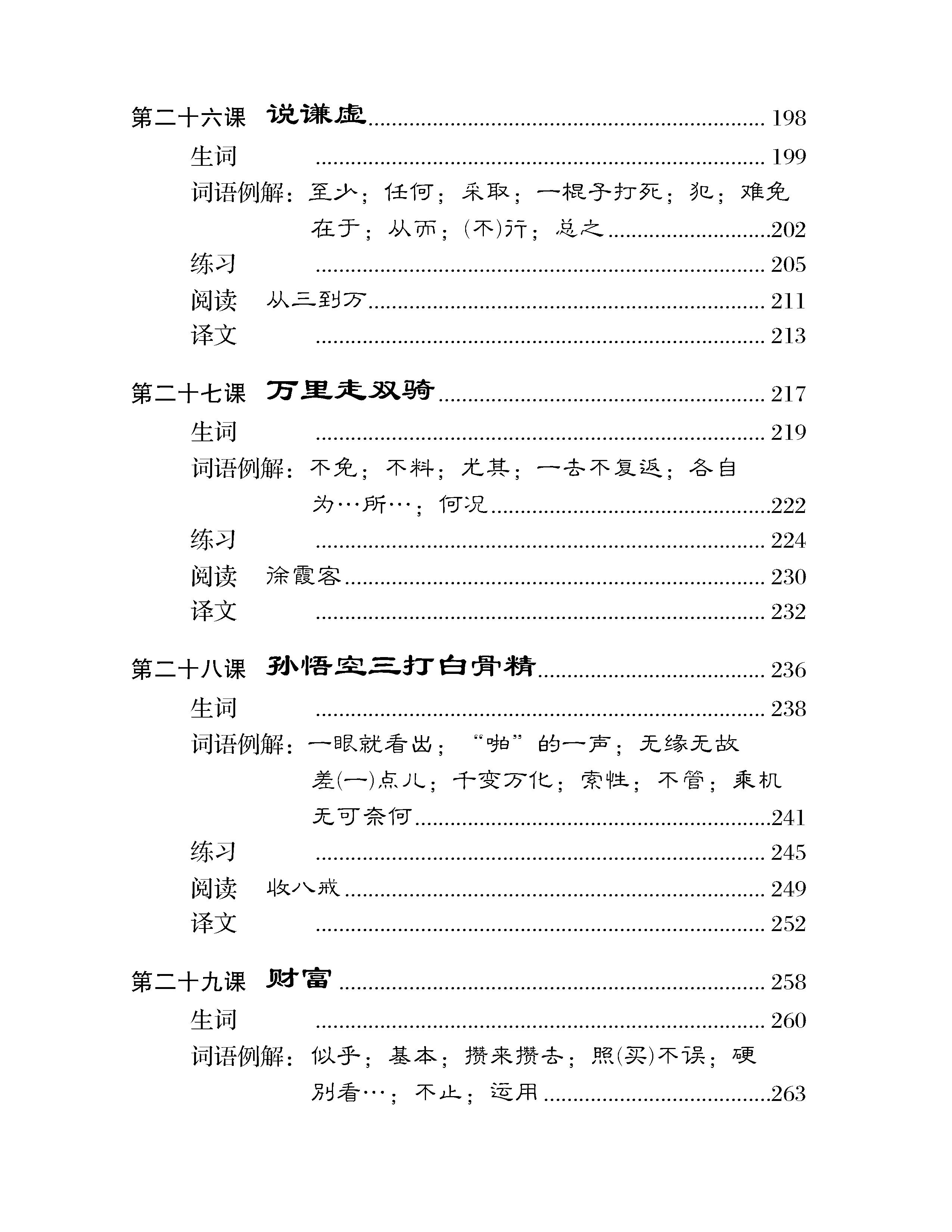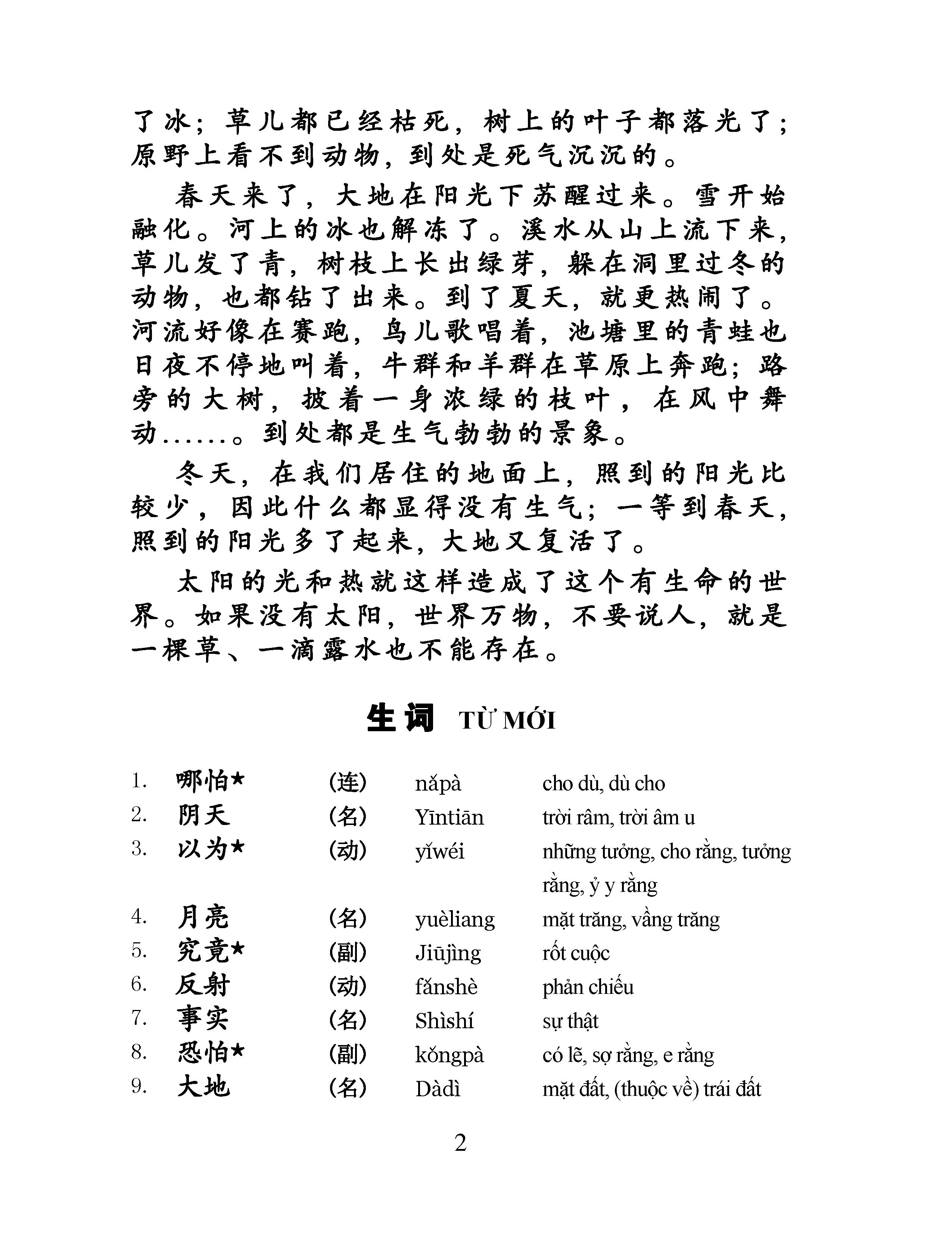 Ngoài ra, để giúp người học củng cố, bổ sung và hệ thống lại các nội dung ngữ pháp đã học trong chương trình sơ trung cấp, khi biên dịch tài liệu này, chúng tôi soạn thêm phần “Ôn tập ngữ pháp” theo hình thức tiểu kết sau mỗi bài. Để người học có thể đối chiếu bài làm, bài dịch của mình, chúng tôi có bổ sung thêm ở cuối sách phần “Đáp án bài tập” và “Bản dịch các bài đọc”. Sách còn có “Bảng từ vựng”, “Bảng danh từ riêng”, “Bảng từ ngữ được giải thích” giúp người học thuận lợi hơn trong việc tra cứu.