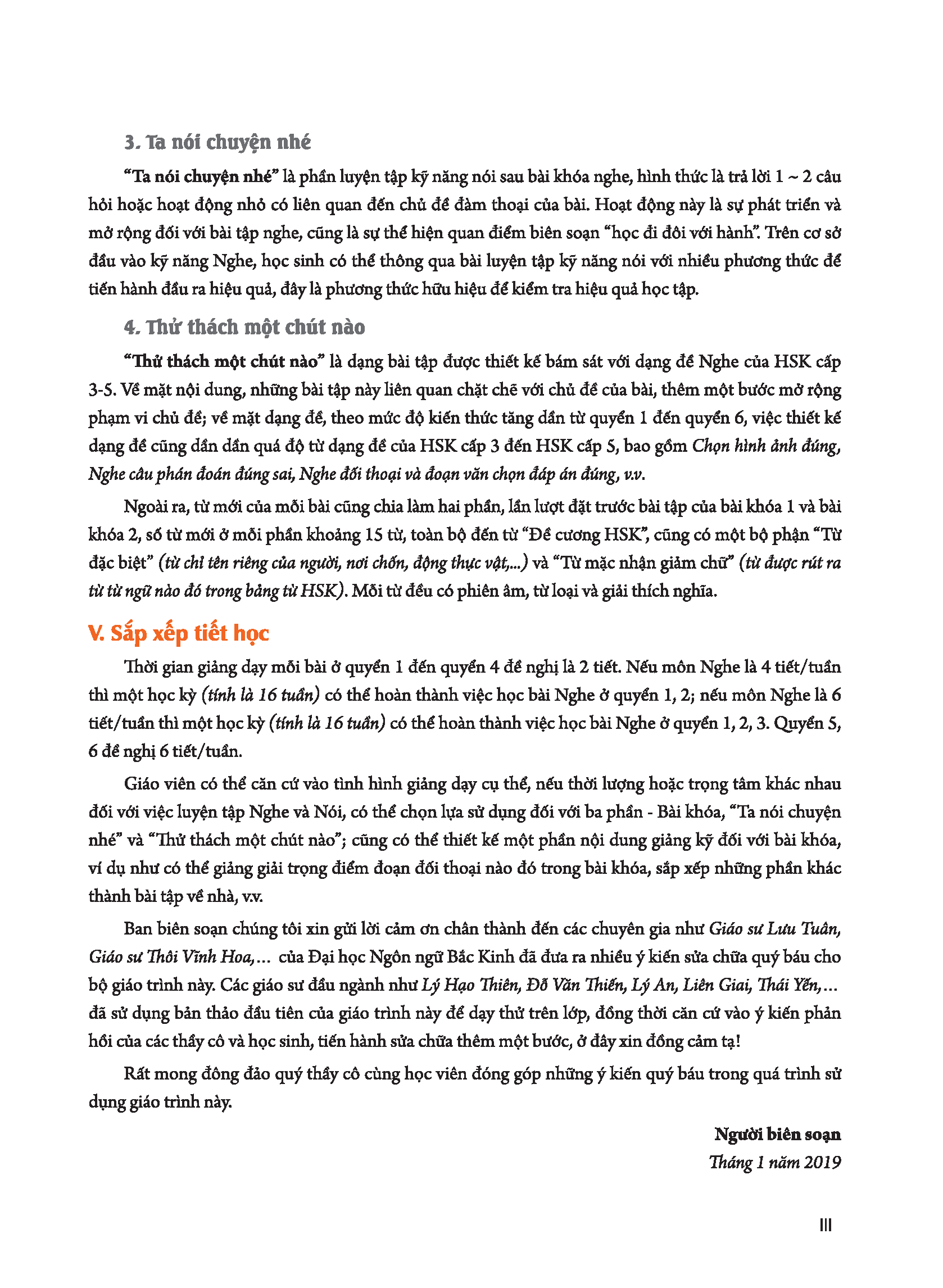 Quyển 1 của bộ giáo trình này thích hợp dùng cho người học tiếng Trung bắt đầu từ con số không. Quyển 2 thích hợp dùng cho học sinh đã học qua quyển 1 hoặc đã nắm được 250 ~ 300 từ ngữ tiếng Trung. Quyển 1, 2 về cơ bản bao quát từ vựng HSK cấp 3. Quyển 3 thích hợp dùng cho học sinh đã học qua quyển 2 hoặc đã nắm được 550 ~ 600 từ ngữ tiếng Trung. Quyển 4 thích hợp dùng cho học sinh đã học qua quyển 3 hoặc đã nắm được 850 ~ 900 từ ngữ tiếng Trung. Quyển 3, 4 về cơ bản bao quát từ vựng HSK cấp 4. Quyển 5 thích hợp dùng cho học sinh đã học qua quyển 4 hoặc đã nắm được 1500 ~ 2000 từ ngữ tiếng Trung. Quyển 6 thích hợp dùng cho học sinh đã học qua quyển 5 hoặc đã nắm được 2500 ~ 3000 từ ngữ tiếng Trung. Quyển 5, 6 về cơ bản bao quát từ vựng HSK cấp 5.