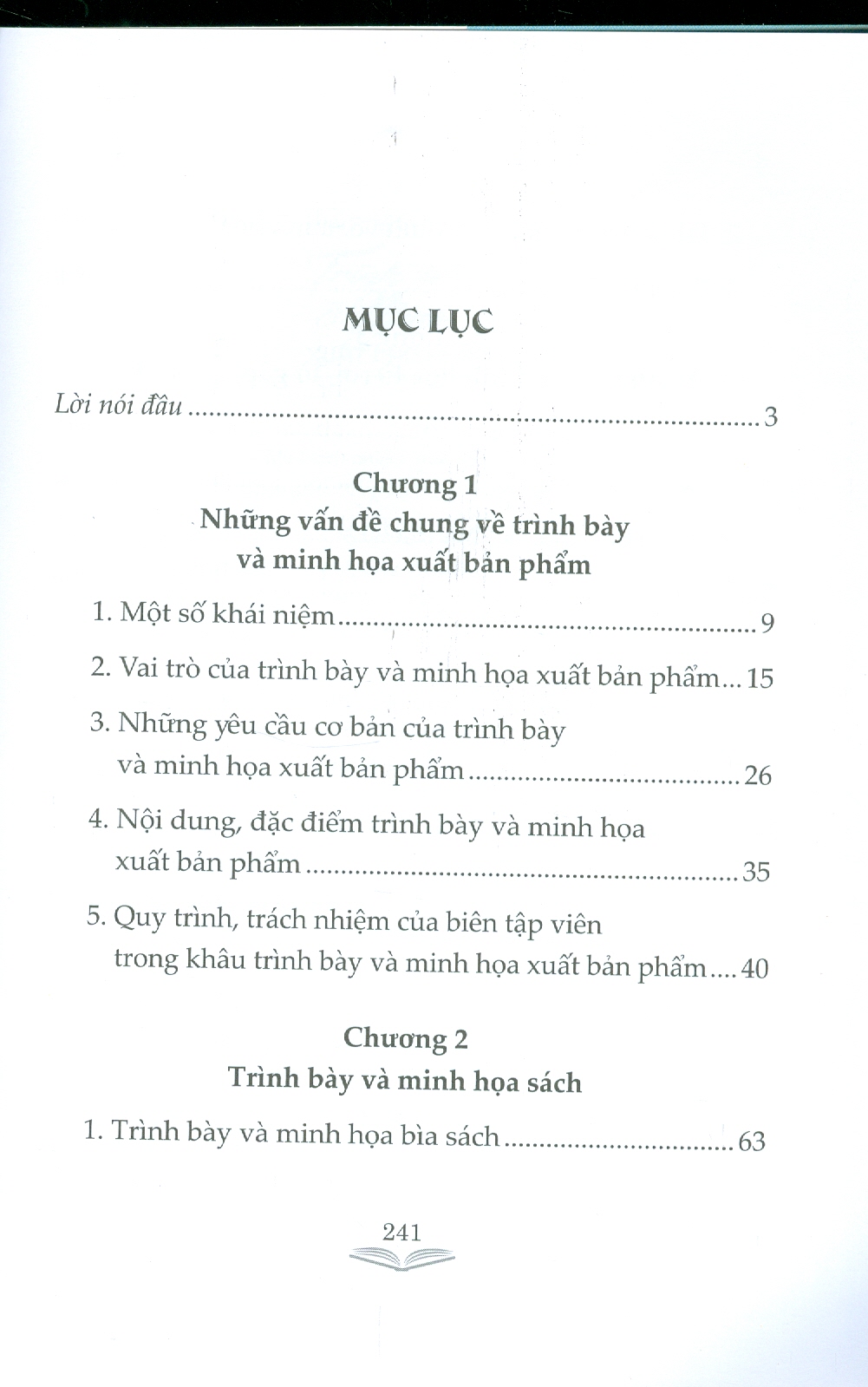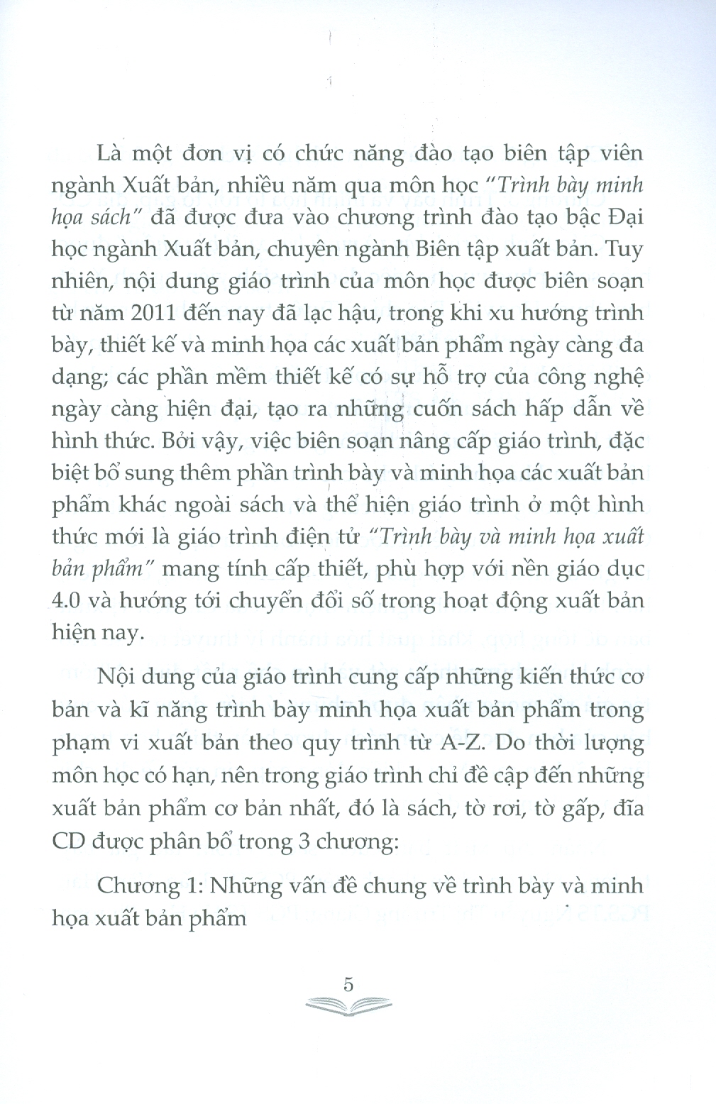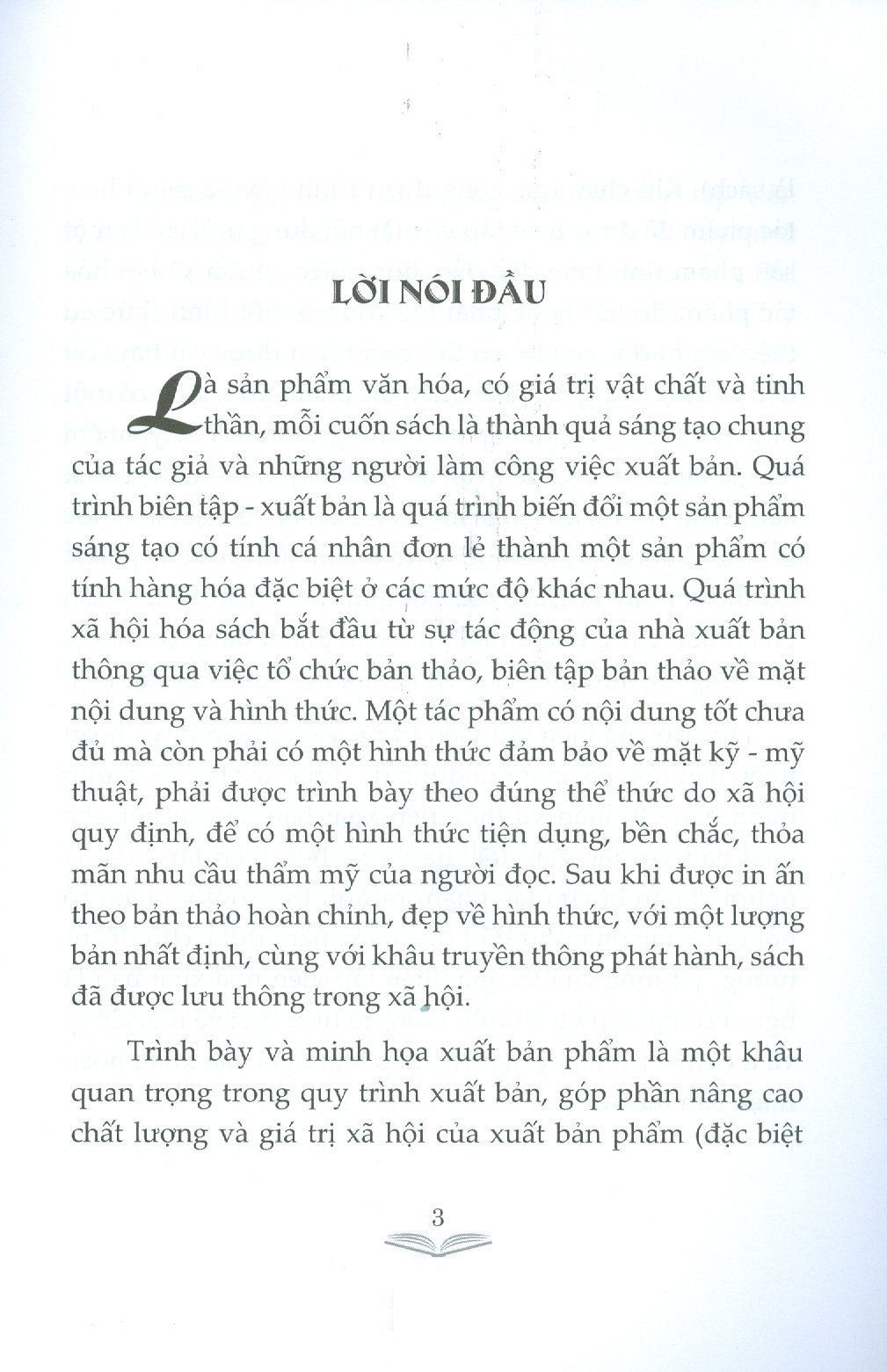 Trình bày và minh họa là một khâu quan trọng trong quá trình xuất bản xuất bản phẩm, góp phần nâng cao chất lượng và giá trị xã hội của xuât bản phẩm ( đặc biệt là sách). Người đọc sẽ khó có thể cảm nhận được cái hay, cái đẹp của nội dung tác phẩm nếu tác phẩm không có một hình thức phù hợp và hấp dẫn