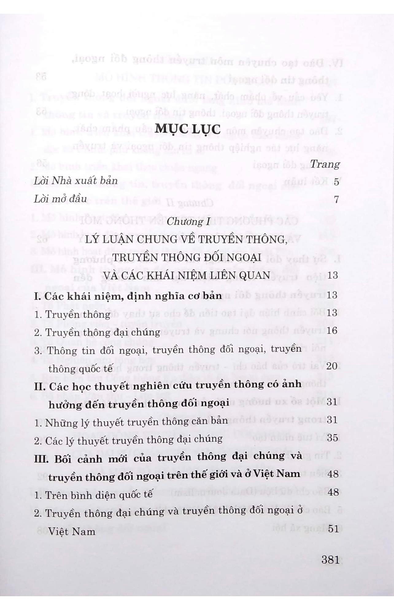 - Lý luận chung về truyền thông, truyền thông đối ngoại và các khái niệm liên quan