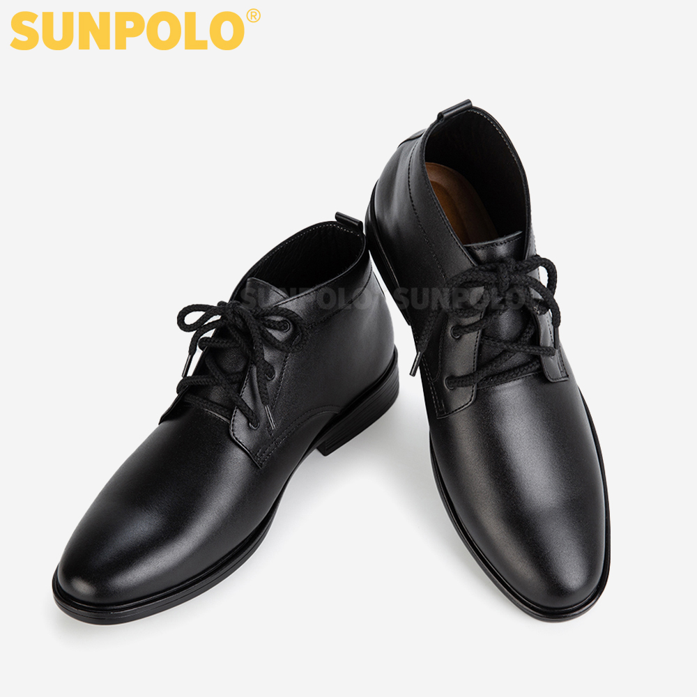- Giày Boot Nam SUNPOLO BOOT03 giúp các chàng biến hoá linh hoạt mọi phong cách thời trang phái mạnh với thiết kế mặt da trơn tinh giản, xu hướng hiện đại, chất liệu da thật dày dặn, bền bỉ kết hợp đế đúc khuôn chắc chắn tạo siêu phẩm hoàn hảo, đáng sở hữu trong tủ giày