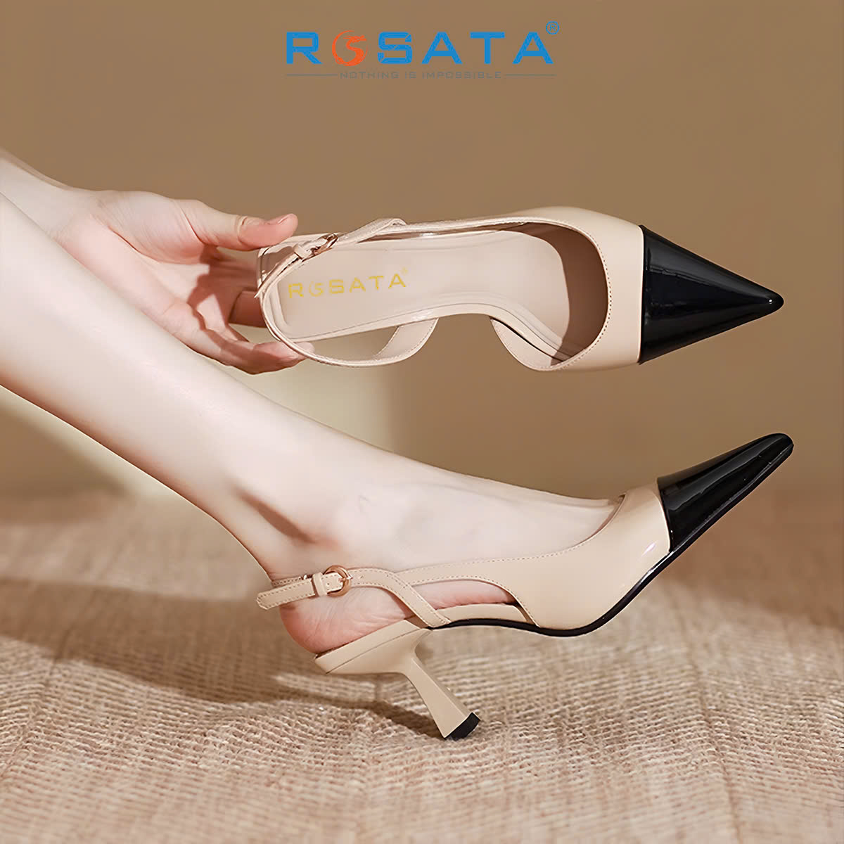 ✨Giày cao gót nữ mũi nhọn, quai sau ROSATA RO680 -5p-Đen Be-HÀNG VIỆT NAM-BKSTORE