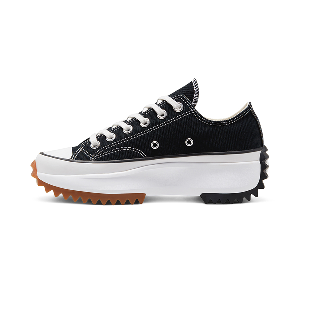 Gót giày thay vì có logo Converse quen thuộc thì với đôi Run Star Hike thay bằng ngôi sao màu đen ở chính giữa. Đế giày dày tới 6cm, và là một trong những đôi sneakers có phần đế dày nhất tính đến hiện tại.
