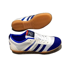 Giày đá bóng futsal mới màu xanh quân đôi cho độ bám sàn tốt cũng như có độ bền cùng độ dẻo dai cao, là chọn lựa lý tưởng của những bạn nam yêu thích