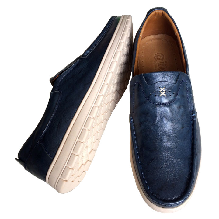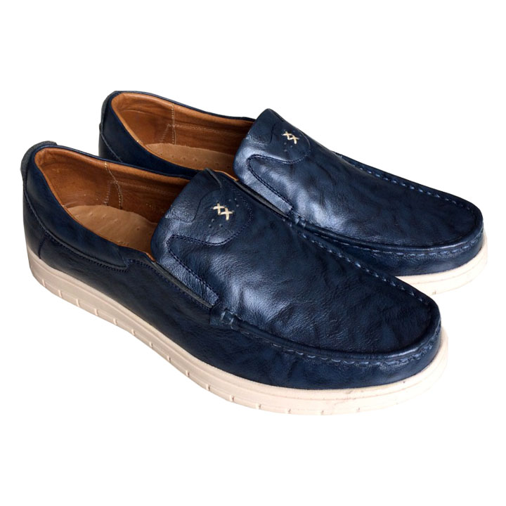 ✨Giày mọi nam Trường Hải màu xanh lam bò da bò thật cao cấp không bong tróc đế cao su chống mòn không trơn GMTH097