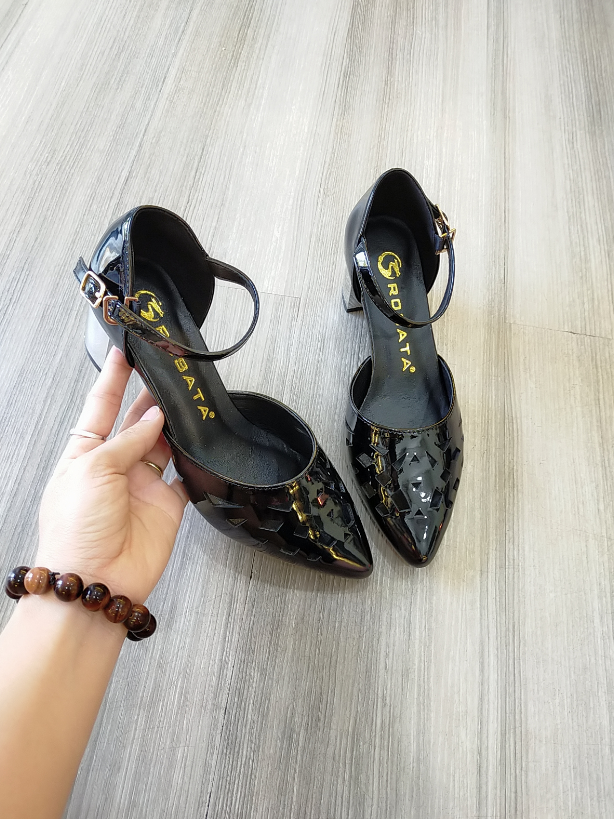 #Giày #sandal bít mũi, quai dán, da bóng cao cấp #ROSATA #RO309 cao 6.5p - đỏ, đen - #BKSTORE