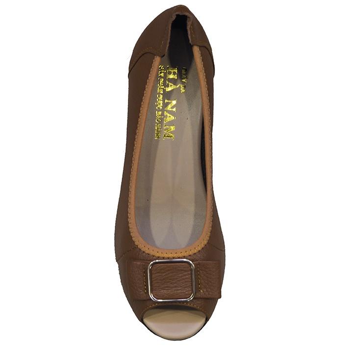 Giày đế xuồng 5cm bigsize hở mũi Trường Hải da bò thật