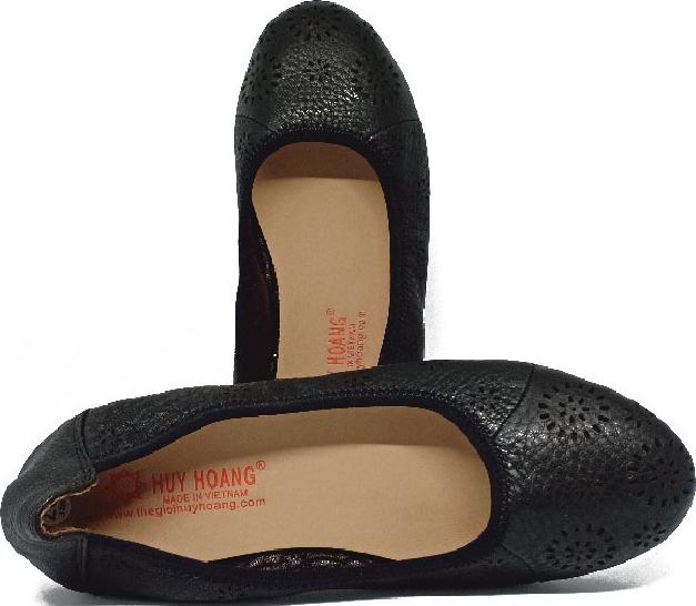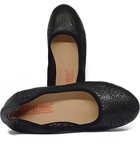 ✨Giày nữ hoa văn Huy Hoàng da bò màu đen HT7948