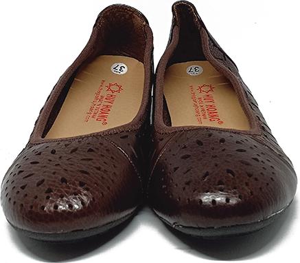 Giày nữ hoa văn Huy Hoàng da bò màu nâu 7949