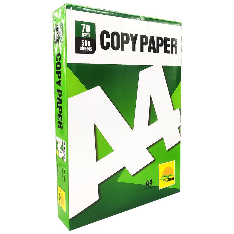 Giấy Photo The Sun A4/80 Chất lượng hàng đầu. Thân thiện với môi trường. Phù hợp cho việc sao chép, in ấn với những loại mực hộp, mực in laser và cả những bản in
