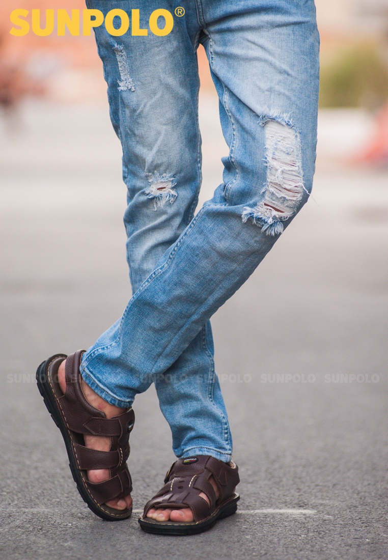 ✨Giày Sandal Nam Da Bò SUNPOLO SDA023 (Đen, Nâu)