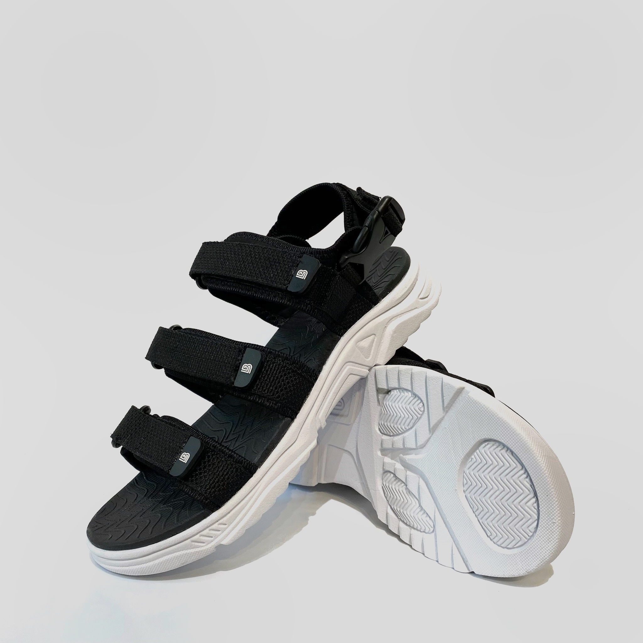 ✨Giày Sandal Nam The Bily 3 Quai Ngang - Đế Trắng Lót Đen Màu Đen BLDTMD04