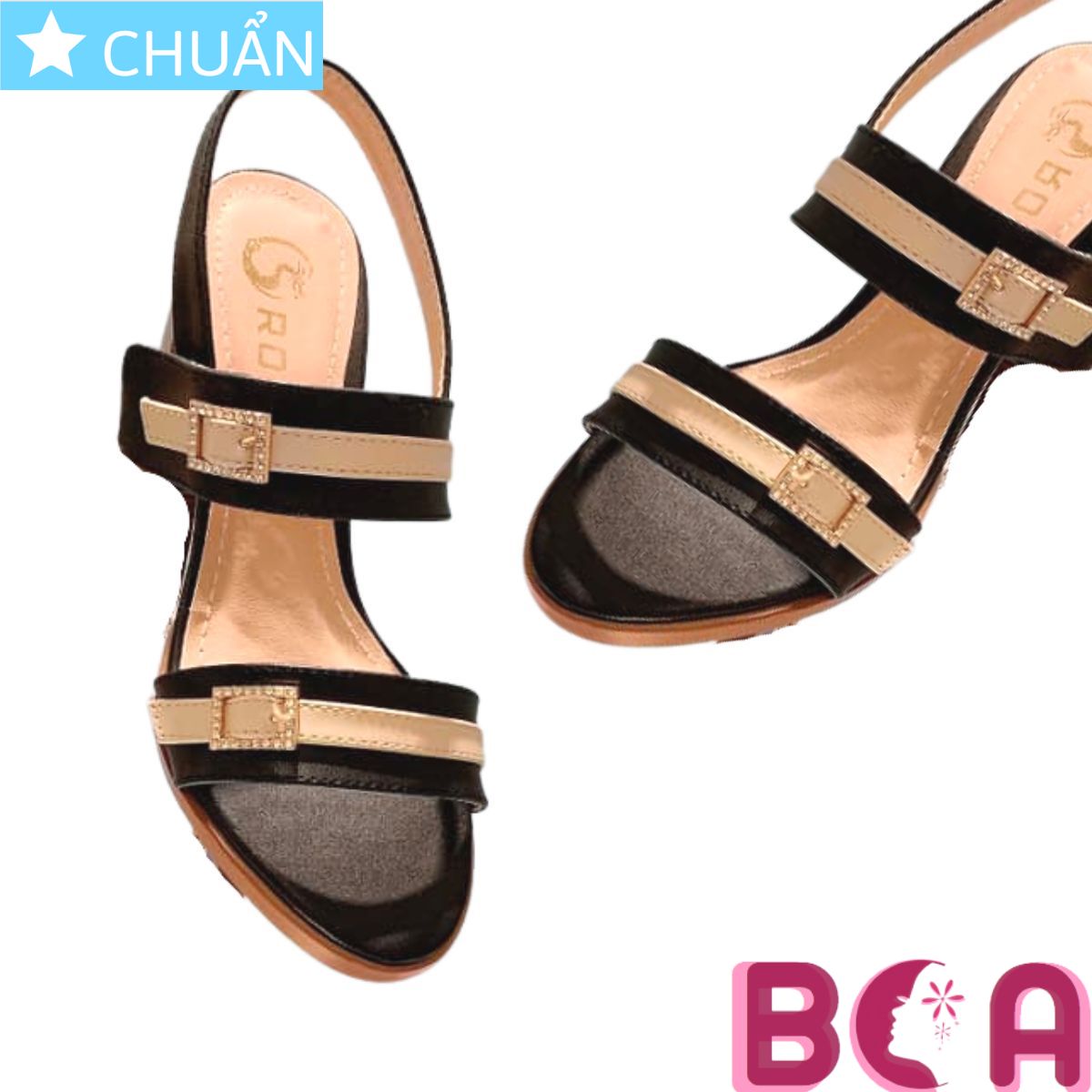 ✨Giày sandal nữ gót trụ 7p RO528 ROSATA tại BCASHOP kiểu dáng thời trang, phối màu lạ mắt và độc đáo giữa đen và da