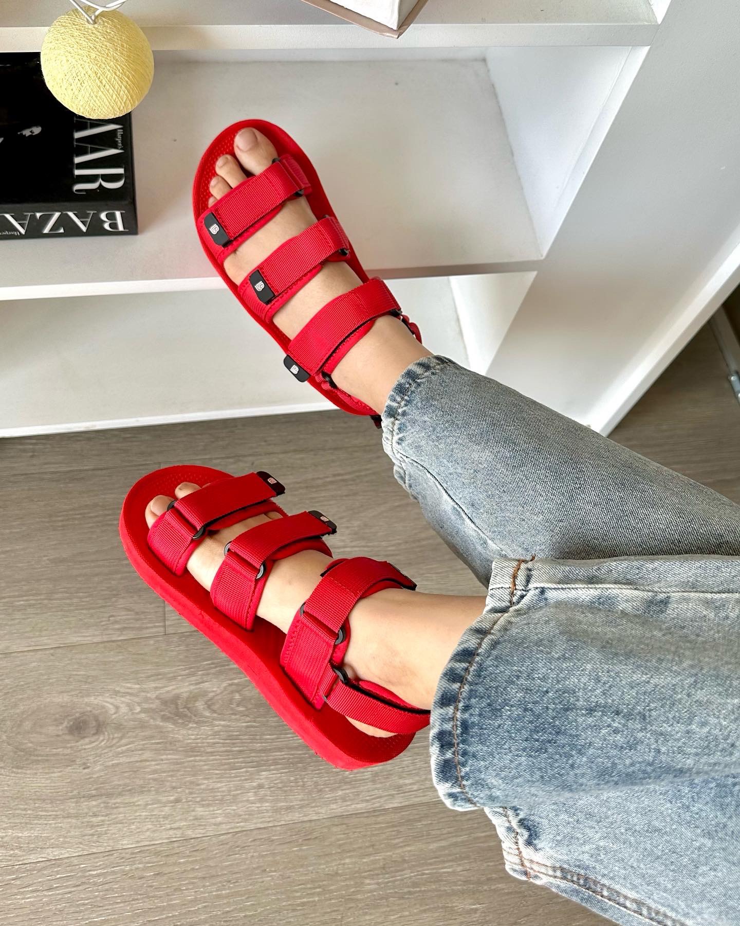✨Giày Sandal Nữ The Bily 04W 3 Quai Ngang - Màu Đỏ BL04WD