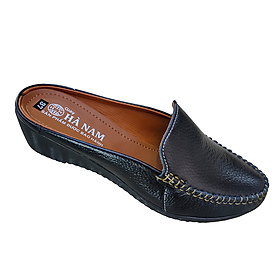 Giày Sục Nữ Giày Đế Xuồng Da Bò Thật Cực Mềm Gót Cao 5cm Evelynv 5P1316 (Đen)