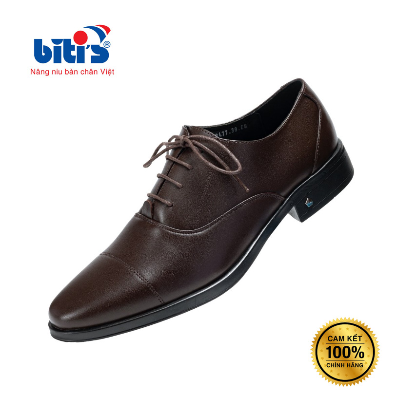 (V0 Mô tả sản phẩm: GIÀY DA NAM BITI’S - LỊCH LÃM & ĐẲNG CẤP Size: 39 - 43 Màu sắc: - Đen cổ điển(H9) - Nâu sang trọng(HG20) Mô tả sản phẩm: Giày da nam Biti’s thiết kế dáng Oxford thanh lịch, phối dây buộc tinh tế giúp tăng nét chỉnh chu, chuyên nghiệp cho quý ông. Chất liệu da tổng hợp cao cấp mềm mại, độ bền cao, dễ vệ sinh. Đế giày chắc chắn, chống trơn trượt tốt, hỗ trợ bước đi vững vàng và thoải mái cả ngày dài. Phù hợp sử dụng trong môi trường công sở, dự tiệc hay sự kiện trang trọng. Ưu điểm nổi bật: - Kiểu dáng thời thượng, dễ phối trang phục - Chất liệu bền đẹp, không bong tróc - Cam kết chính hãng 100% từ Biti’s – “Nâng niu bàn chân Việt”