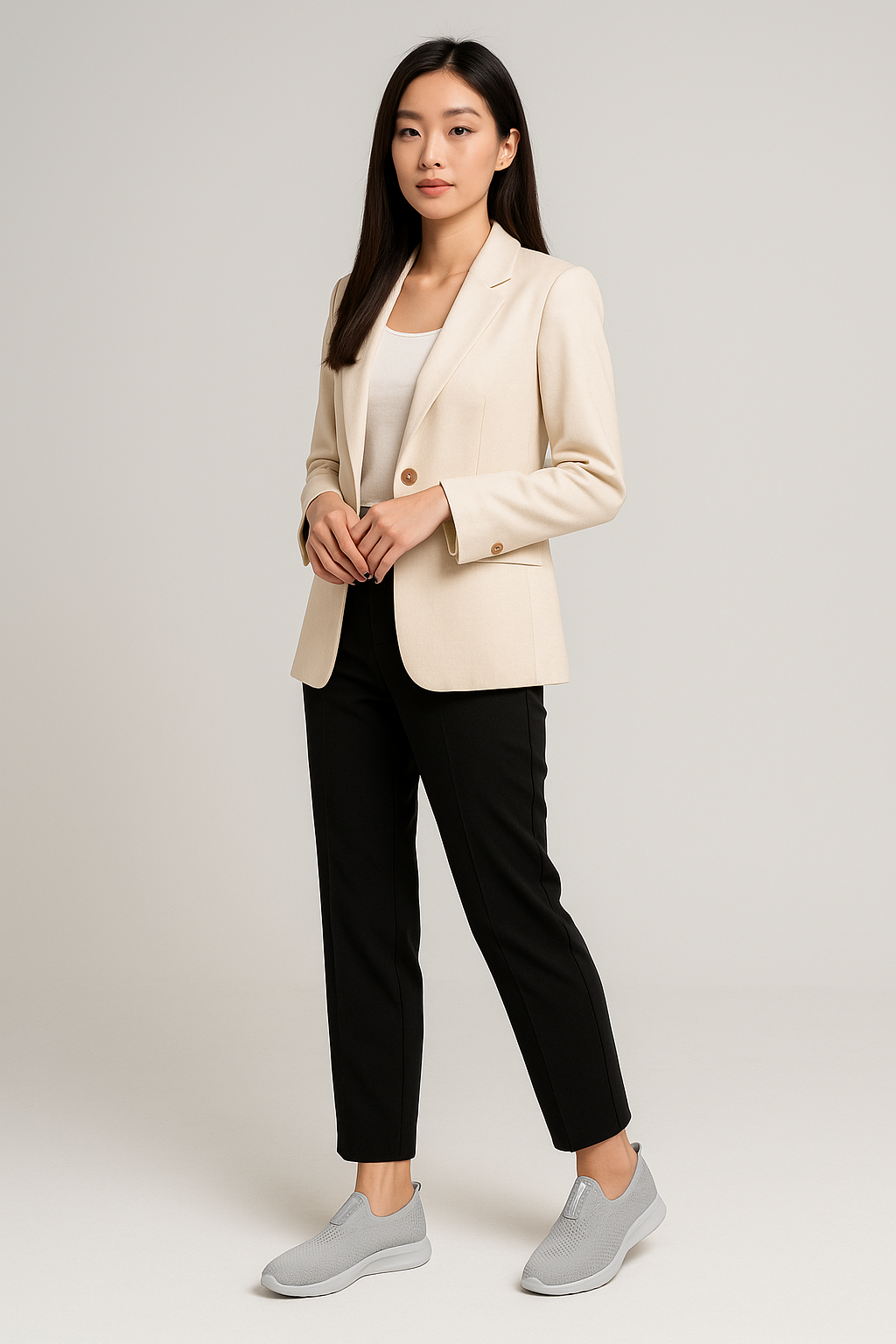 Thiết kế trẻ trung, tối giản: Form ôm chân hiện đại, cổ vừa tôn dáng, dễ phối đồ.