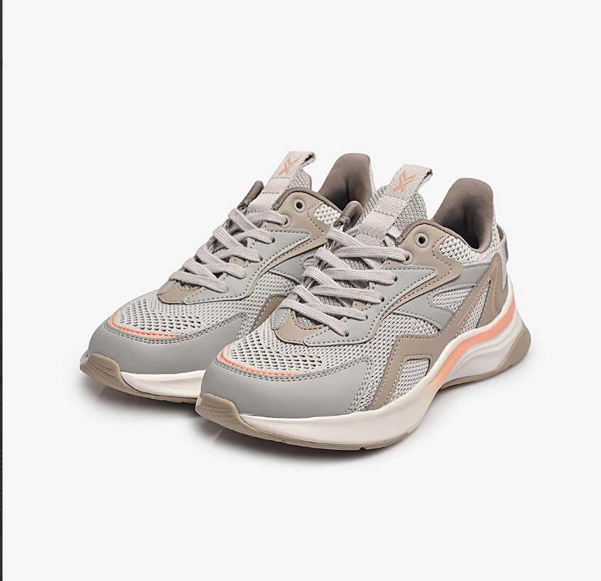 Đế giày -  lựa chọn chất liệu Phylon làm nên đế giày thể thao cho các chị em. Vì tính chất nổi bật của vật liệu này là trọng lượng siêu nhẹ (nặng chỉ 300g/chiếc) và độ đàn hồi cao. Nhờ đó, phần lớn khách hàng sử dụng sản phẩm ngay từ lần đầu tiên đều có cảm giác đôi chân “nhẹ như bay”, bước đi thoải mái và thỏa thích vận động ở mọi tư thế theo cách riêng mà không lo đau mỏi chân.  - Mặt đế thiết kế thêm những rãnh chống trượt, bố trí dày đặc nhằm tăng độ ma sát. Qua đó giúp người mang vận động thoải mái, bước đi vững chắc và bảo đảm an toàn tối đa, nhất là khi di chuyển trên những địa hình trơn nhẵn hoặc thời tiết ẩm ướt. Thân giày - Thân giày  áp dụng công nghệ đan 2 sợi độc đáo. Nhờ vậy, sản phẩm vô cùng nhẹ và thoáng, mang lại cảm giác thoải mái nhất có thể cho người sử dụng. Không những vậy, công nghệ đan 2 sợi còn bảo đảm độ bền chặt của từng chi tiết như cổ giày, quai giày, dây giày… giữ đúng form dáng lâu dài, ít biến dạng hoặc giãn sau một thời gian sử dụng. - Bên cạnh đó, thiết kế thân giày được cải tiến mạnh mẽ bằng chất liệu vải canva, bảo đảm cảm giác thoải mái nhất có thể và hạn chế nóng bức, bí bách nếu phải mang giày trong thời gian dài.  -
