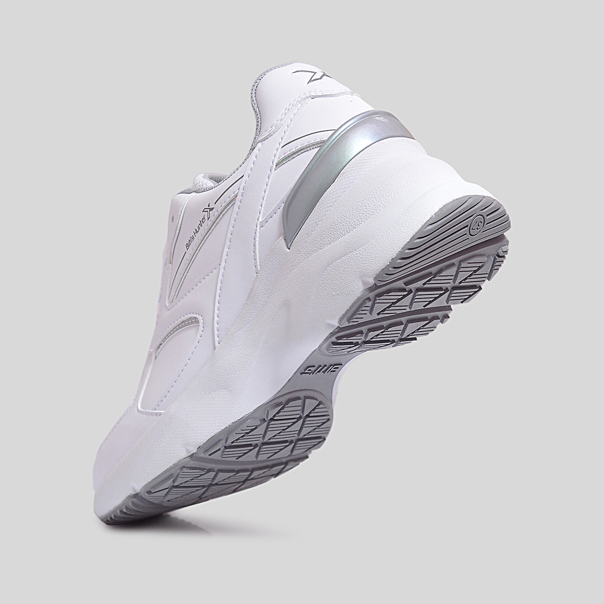 Đế giày -  lựa chọn chất liệu Phylon làm nên đế giày thể thao cho các chị em. Vì tính chất nổi bật của vật liệu này là trọng lượng siêu nhẹ (nặng chỉ 300g/chiếc) và độ đàn hồi cao. Nhờ đó, phần lớn khách hàng sử dụng sản phẩm ngay từ lần đầu tiên đều có cảm giác đôi chân “nhẹ như bay”, bước đi thoải mái và thỏa thích vận động ở mọi tư thế theo cách riêng mà không lo đau mỏi chân.  - Mặt đế thiết kế thêm những rãnh chống trượt, bố trí dày đặc nhằm tăng độ ma sát. Qua đó giúp người mang vận động thoải mái, bước đi vững chắc và bảo đảm an toàn tối đa, nhất là khi di chuyển trên những địa hình trơn nhẵn hoặc thời tiết ẩm ướt. Thân giày - Thân giày  áp dụng công nghệ đan 2 sợi độc đáo. Nhờ vậy, sản phẩm vô cùng nhẹ và thoáng, mang lại cảm giác thoải mái nhất có thể cho người sử dụng. Không những vậy, công nghệ đan 2 sợi còn bảo đảm độ bền chặt của từng chi tiết như cổ giày, quai giày, dây giày… giữ đúng form dáng lâu dài, ít biến dạng hoặc giãn sau một thời gian sử dụng. - Bên cạnh đó, thiết kế thân giày được cải tiến mạnh mẽ bằng chất liệu vải canva, bảo đảm cảm giác thoải mái nhất có thể và hạn chế nóng bức, bí bách nếu phải mang giày trong thời gian dài.  -