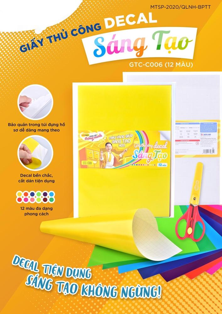 Giấy Thủ Công A4 -Decal (7Tờ/Xấp) Là bộ sản phẩm gồm 7 màu sắc nổi bật giúp các em học sinh hoàn thành tốt các bài tập thủ công cũng như phát huy khả năng