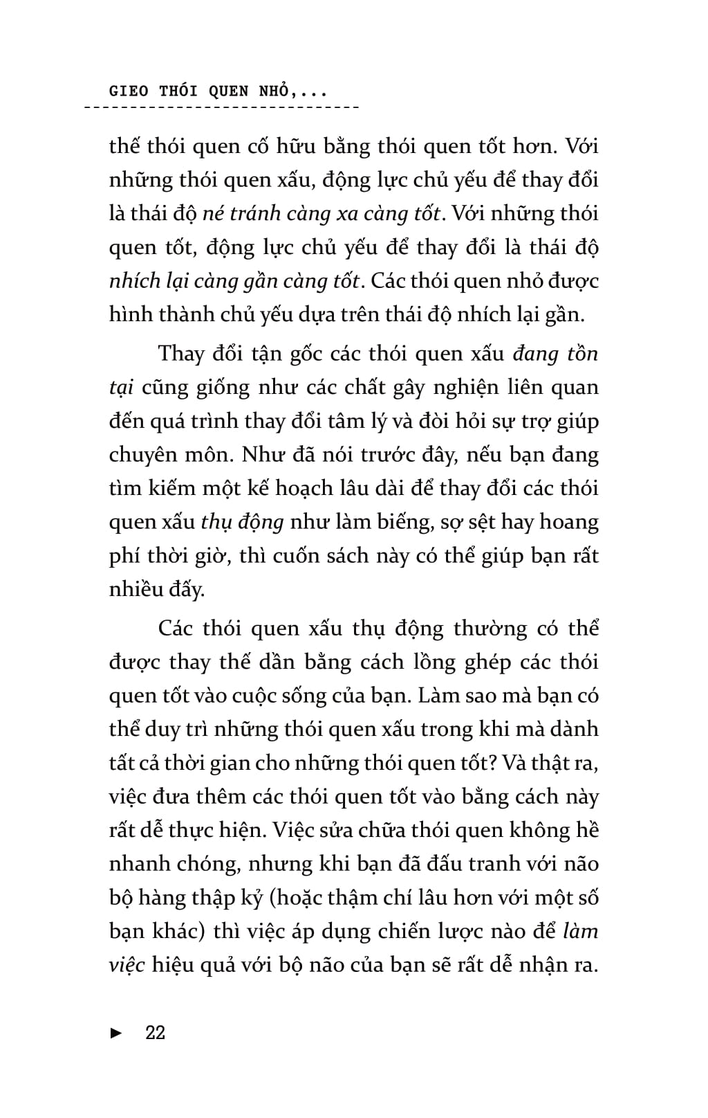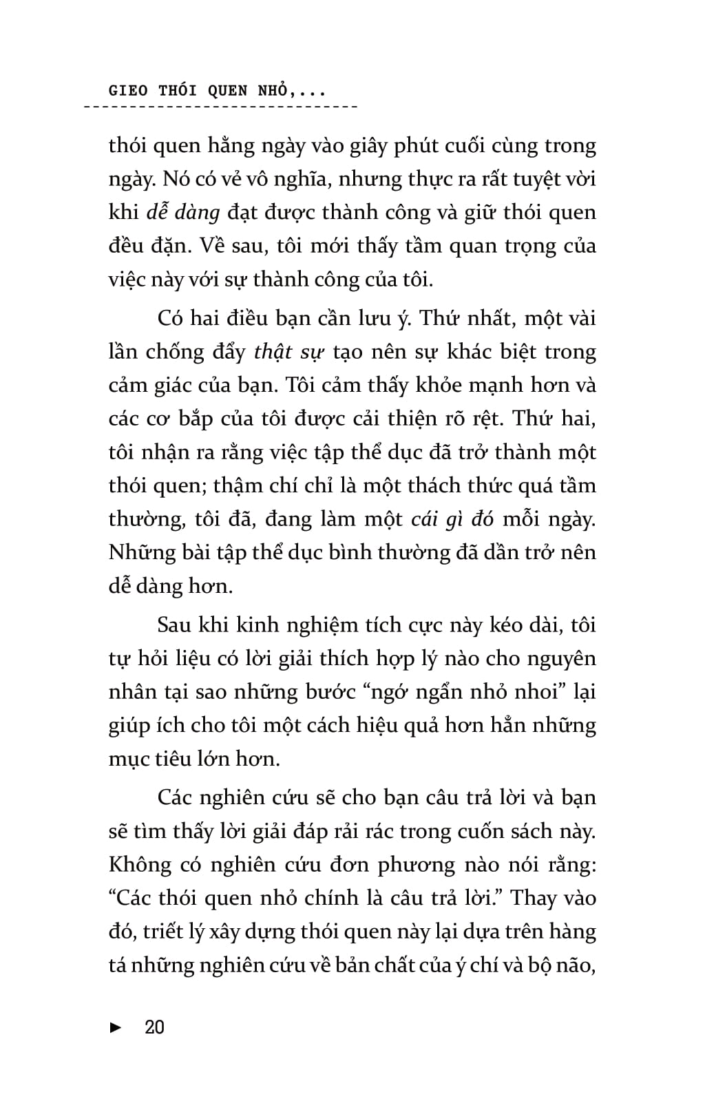 Gieo Thói Quen Nhỏ, Gặt Thành Công Lớn------------ Mọi người thường nghĩ, chính họ là nguyên nhân khiến bản thân không thể đạt được sự thay đổi lâu dài. Nhưng vấn đề ở đây không phải là bản thân họ mà...