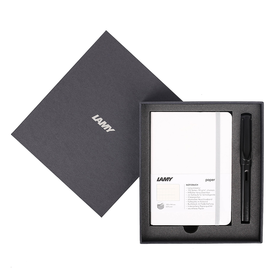 Đi kèm một chiếc bút máy LAMY Safari tinh tế. Tất cả được đặt trong một hộp quà LAMY sang trọng, thích hợp làm quà tặng