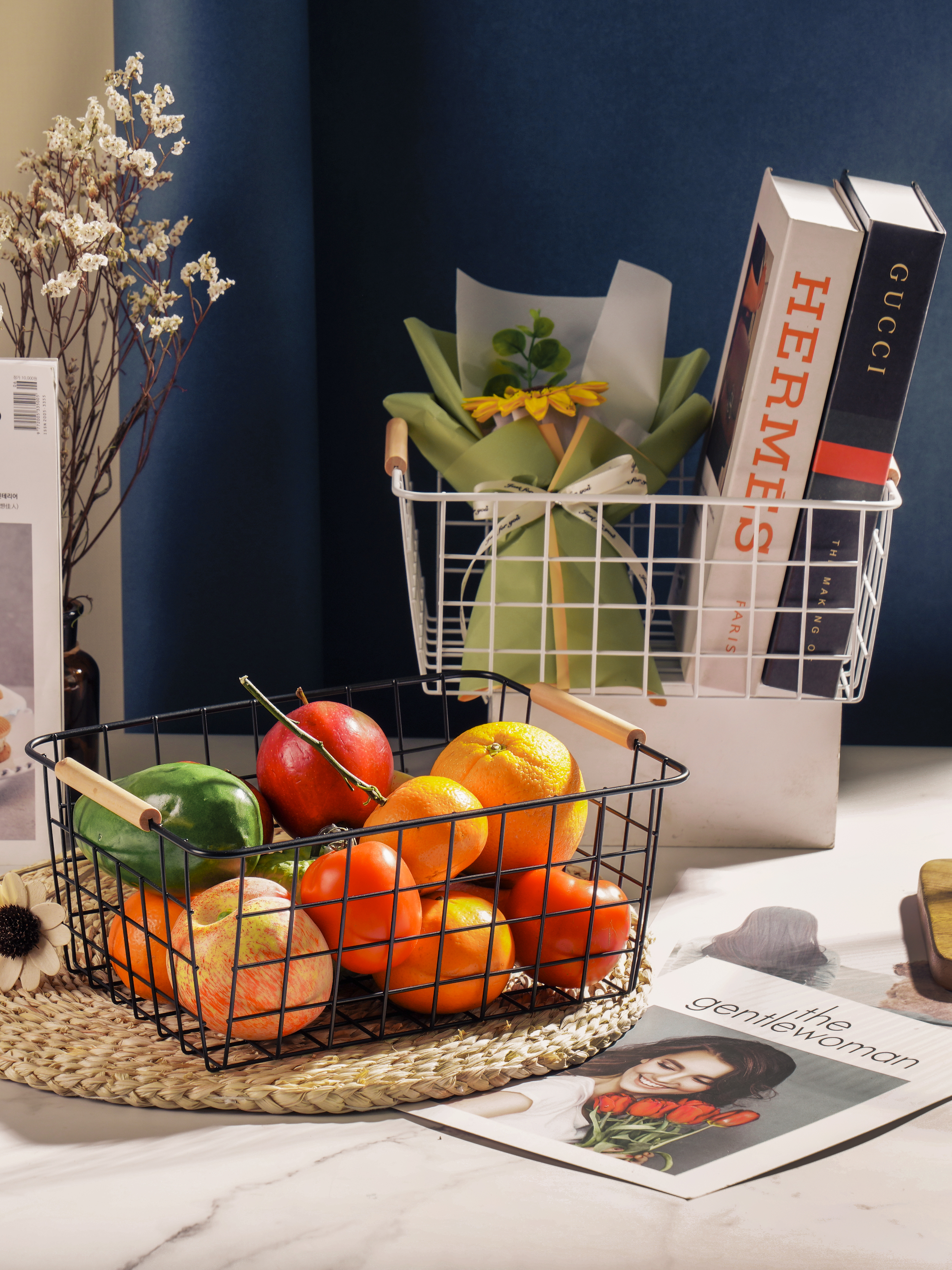 ✨Giỏ kim loại đựng đồ đa năng, tay cầm gỗ_ Hàng nhập khẩu chính hãng.