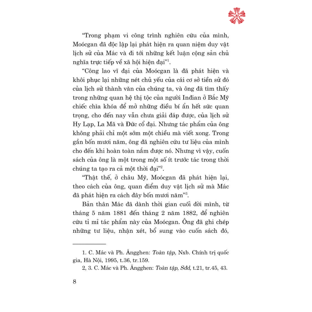Trong hệ thống các trước tác kinh điển của chủ nghĩa Mác – Lênin, tác phẩm Nguồn gốc của gia đình, của chế độ tư hữu và của Nhà nước của Ăngghen là một tác phẩm triết học lớn, được Ăngghen viết trong hai tháng từ cuối tháng 3 đến cuối tháng 5 năm 1884. Tác phẩm dựa trên những tư liệu trong tác phẩm Xã hội cổ đại của Moócgan. Trong tác phẩm này, Ăngghen đã trình bày một cách có hệ thống và phát triển một cách sáng tạo những vấn đề mà Moócgan đã đề cập. Ăngghen xuất phát từ lập trường của chủ nghĩa duy vật biện chứng và chủ nghĩa duy vật lịch sử đã uốn nắn và bổ sung cho nhiều quan điểm của Moócgan và đề xuất những quan điểm mới có tính khoa học và cách mạng.