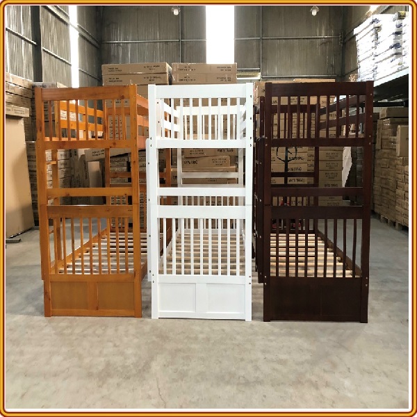 Giường 2 Tầng Unit Có Hộc Kéo (Hai Tầng Đều Rộng 1m2) - Chất liệu Chính: Gỗ thông Newzealand - Màu sắc: Màu Nâu, Trắng, Vàng Tự Nhiên - Thang Giường: Sử Dụng 10 Thang