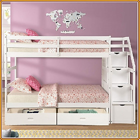 Thông tin sản phẩm: Sản phẩm chỉ bao gồm giường 2 tầng và cầu thang, không kèm các phụ kiện khác. - Chất liệu gỗ thông lâu năm nhập khẩu Canada bền bỉ, an toàn