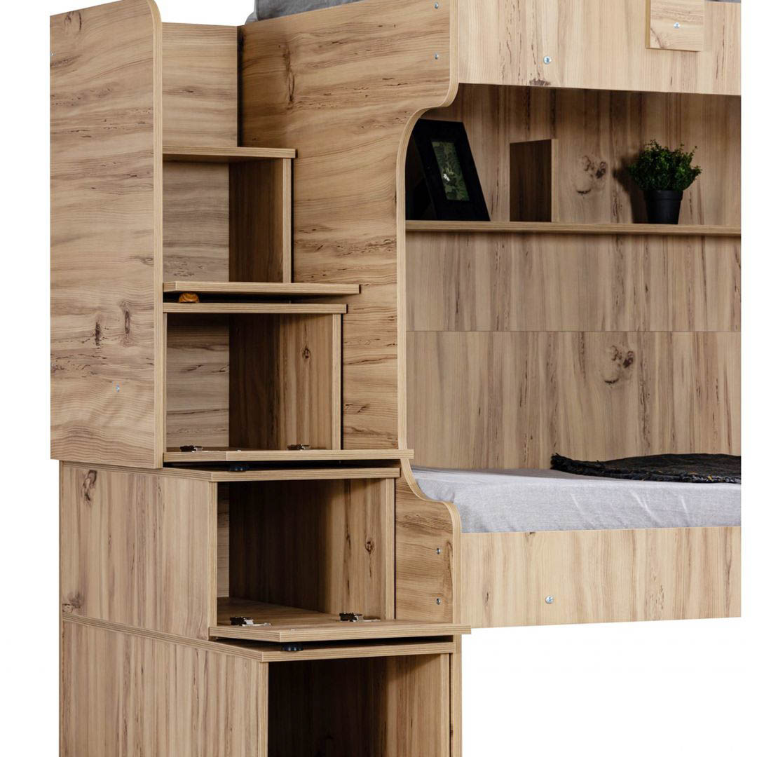 Giường tầng xuất khẩu Derry có kích thước lọt lòng giường trên/dưới là 100x193 cm, phủ bì 202x110x165 cm. Khoảng cách giữa 2 tầng là 95 cm, cầu thang bố trí bên phải. Chân trụ