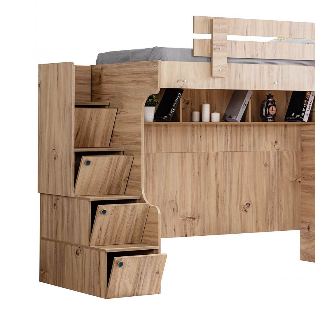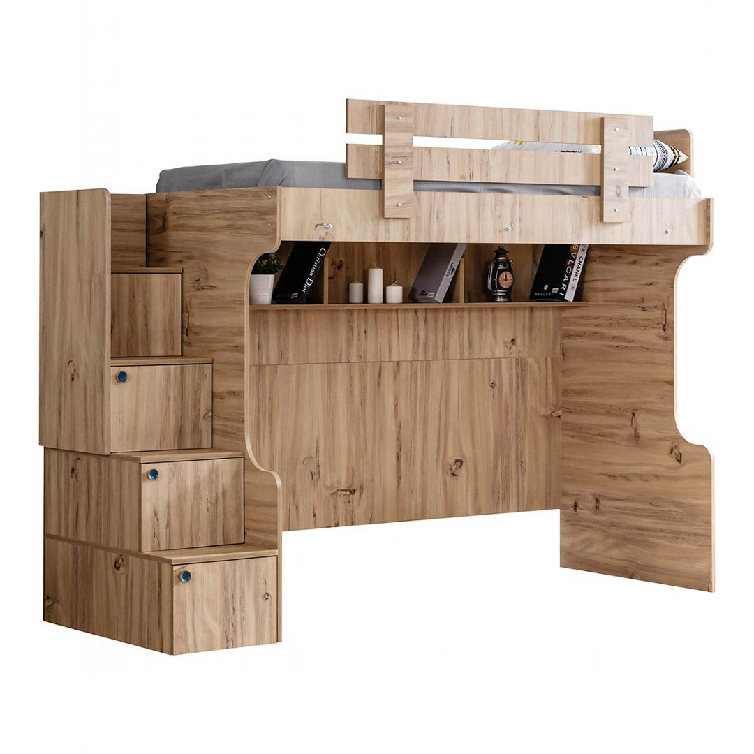 Giường tầng xuất khẩu Derry có kích thước lọt lòng giường trên/dưới là 100x193 cm, phủ bì 202x110x165 cm. Khoảng cách giữa 2 tầng là 95 cm, cầu thang bố trí bên phải. Chân trụ