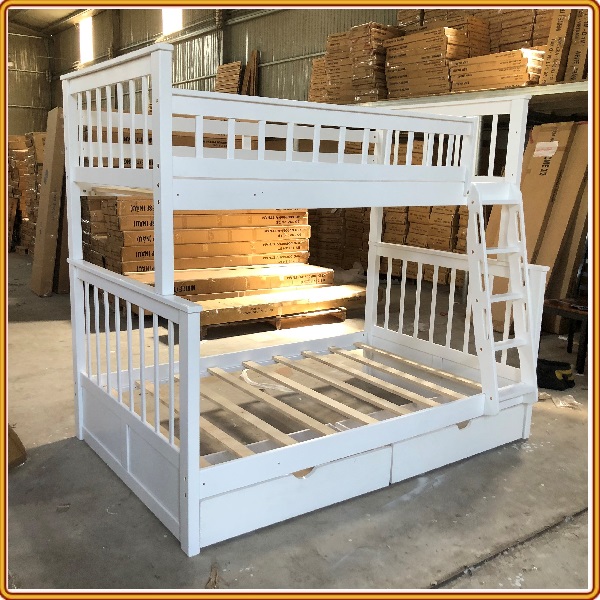 + Chất liệu: Khung giường gỗ thông Newzealand, phân tầng, Vách, đáy hộc gỗ công nghiệp, thang giường MDF chịu lực + Kích thước: kích thước phủ bì, tầng trên ưới 1mx2m Giường tầng hộp