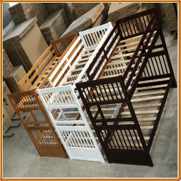 + Chất liệu: Khung giường gỗ thông Newzealand, phân tầng, Vách, đáy hộc gỗ công nghiệp, thang giường MDF chịu lực + Kích thước: kích thước phủ bì, tầng trên ưới 1mx2m Giường tầng hộp